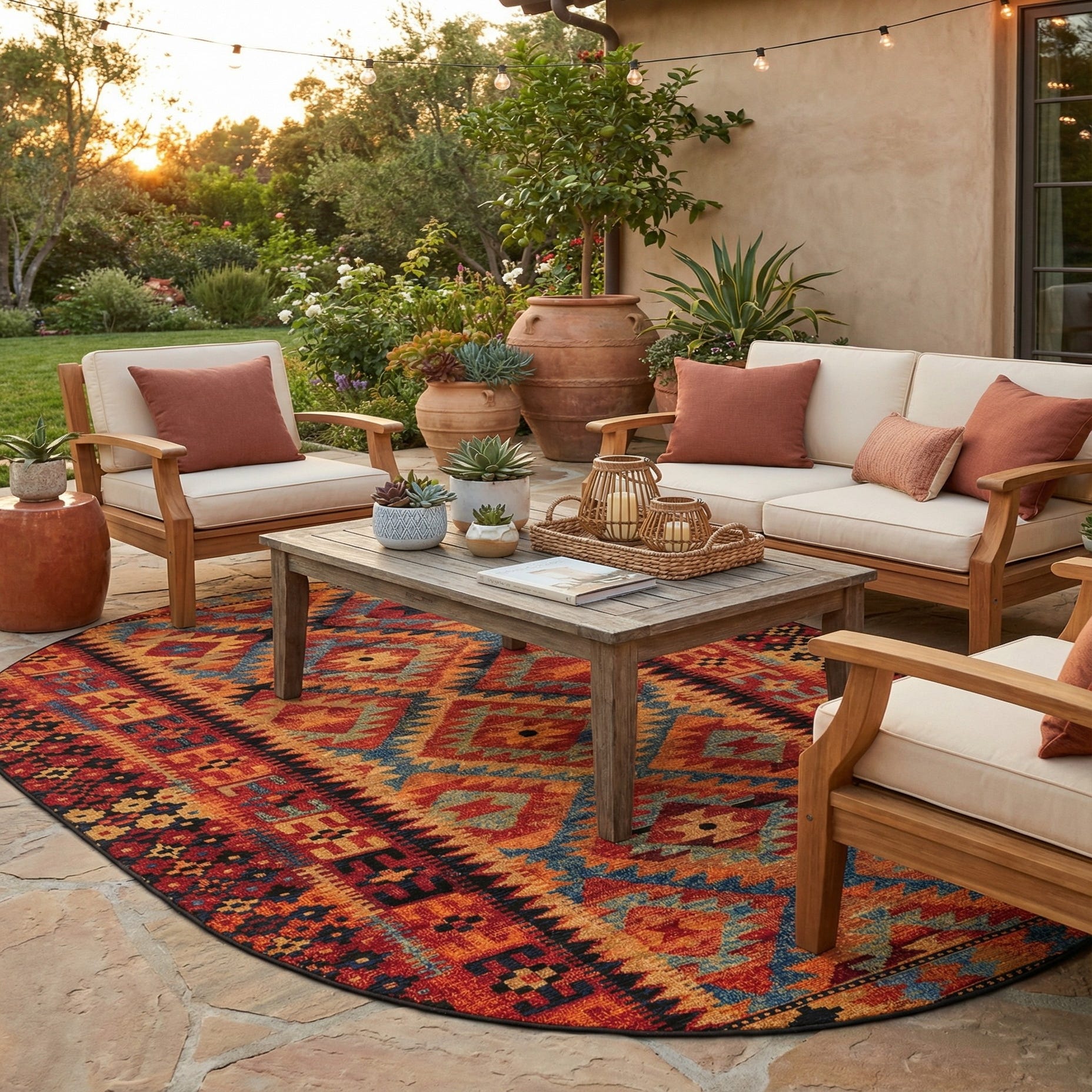 7' 10 x 10' Washable Tribal Indoor / Outdoor Oval Rug