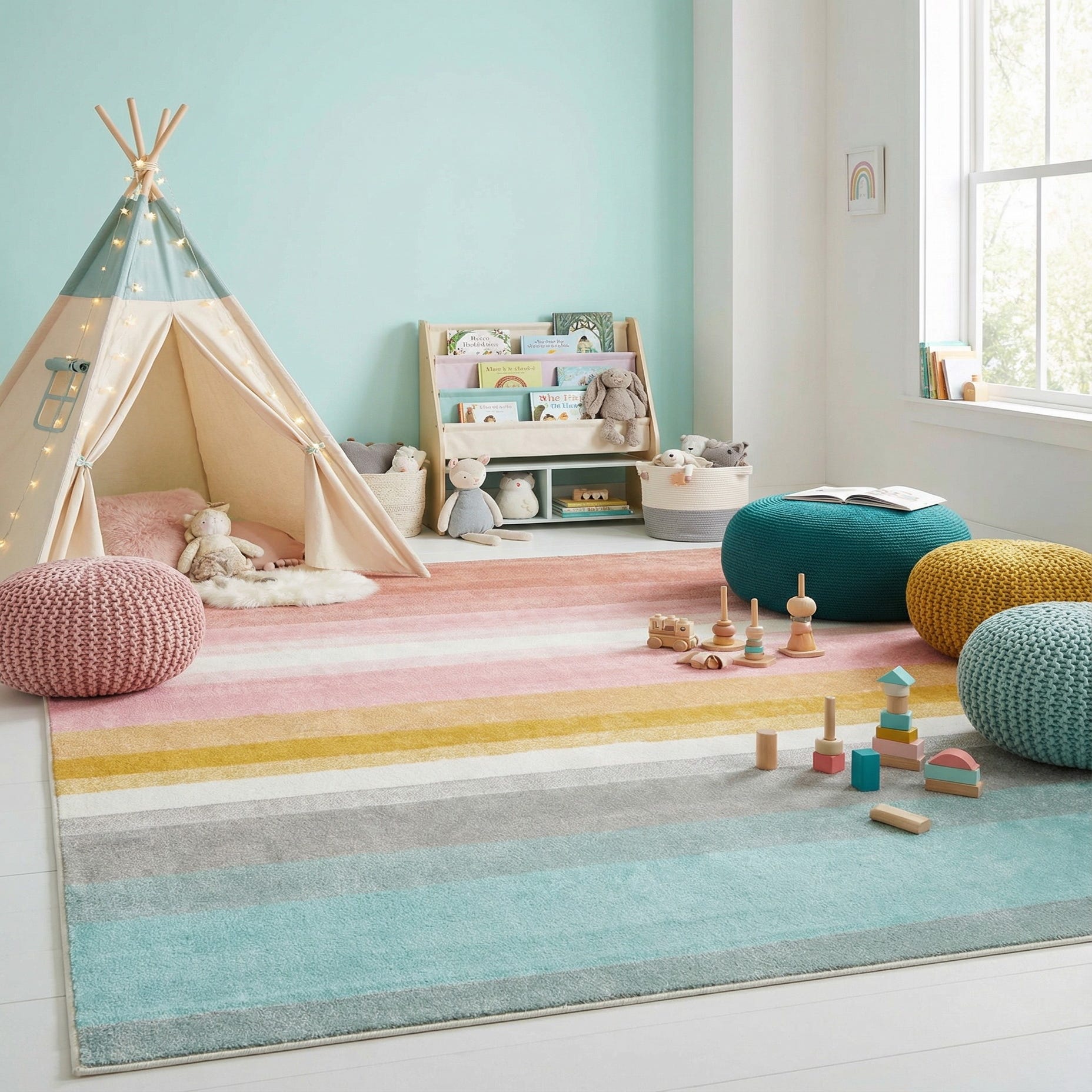 7' 10 x 10' Rainbow Stripes Whimsy Kids Rug