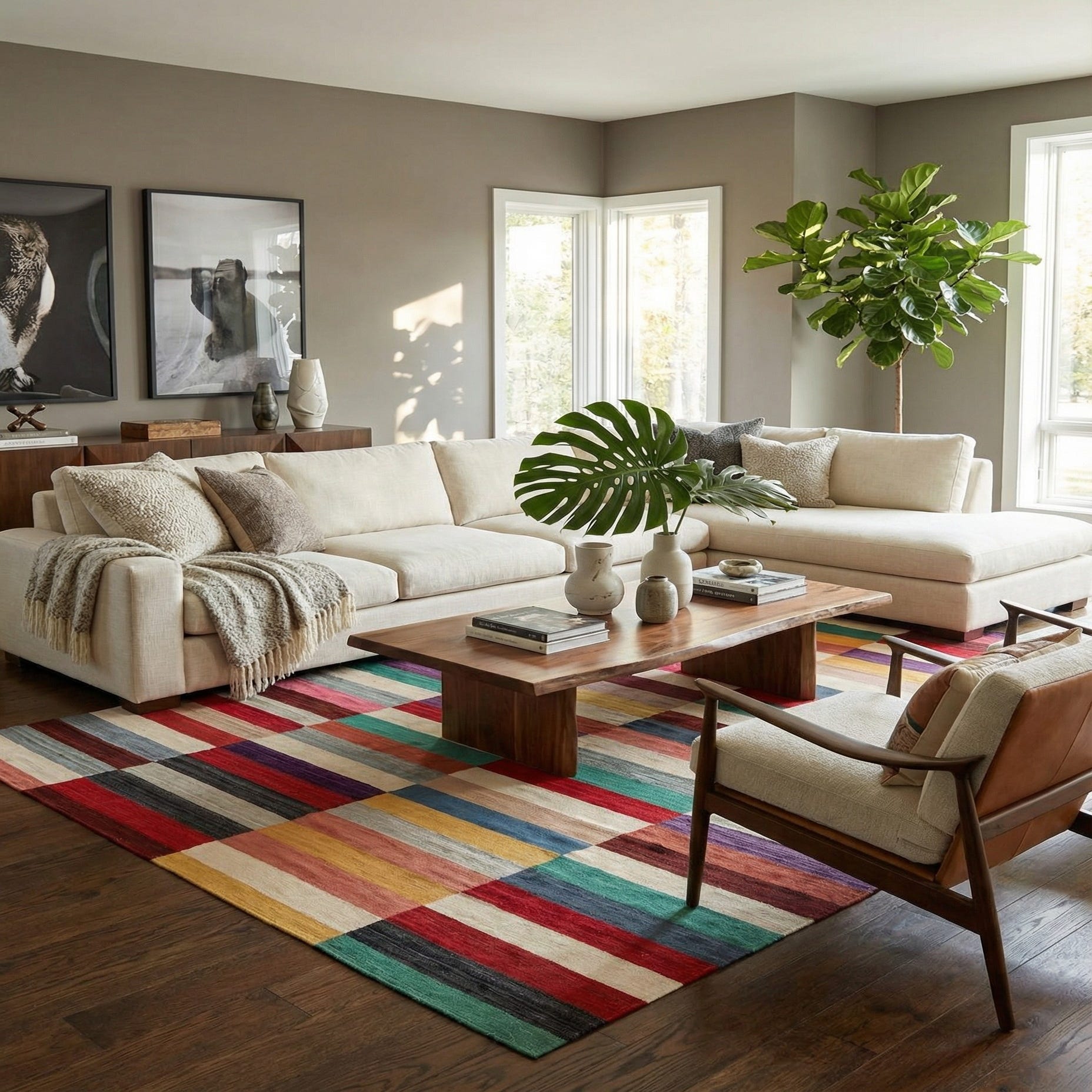 Primary color is Multi. Colors in this rug include: Multi, Beige, Black, Blue, Brown, Gray, Green, Gold, Peach, Red, Pink, Violet, Ivory, Light Blue, Light Brown, Light Green, Navy Blue.
