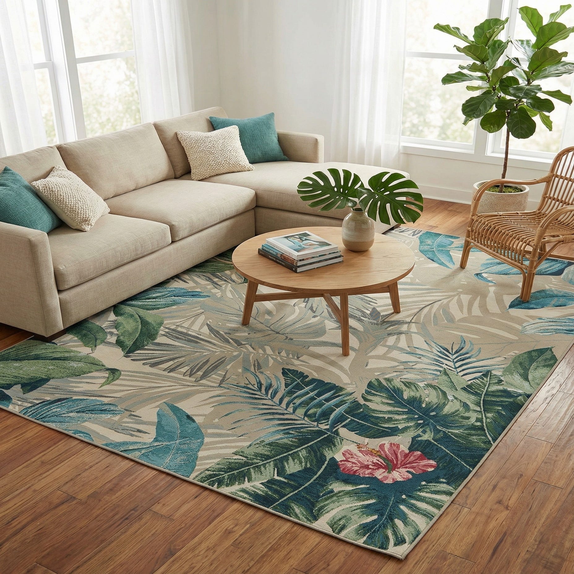 Primary image 7' 10 x 11'  Washable Botanical Indoor / Outdoor Rug