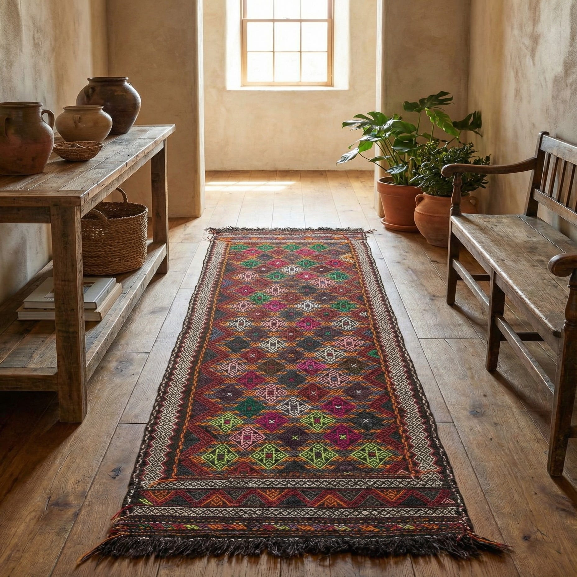 Detail image of 2' 7 x 9' 2  Hand Woven Kilim Fars Wool Runner Rug