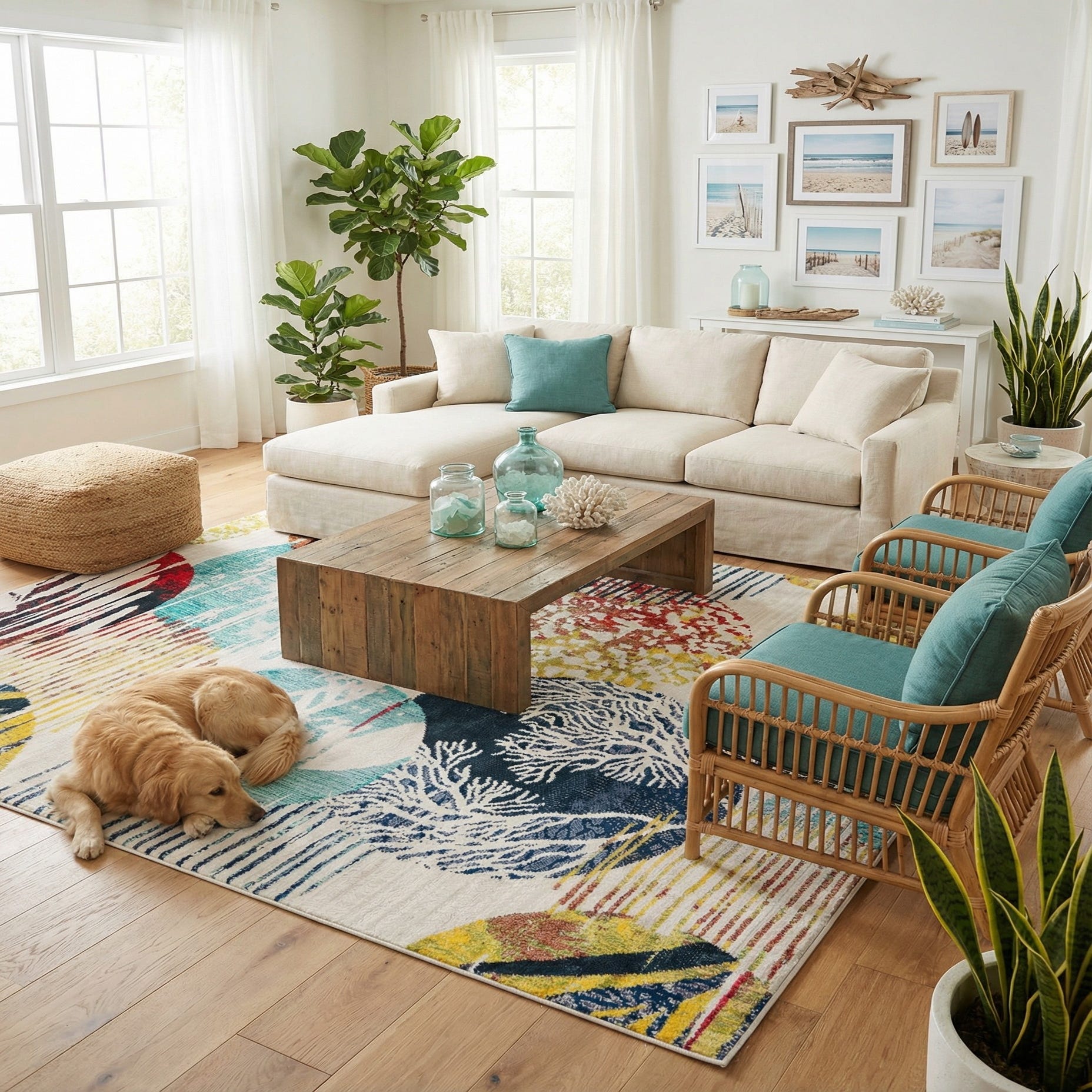 Primary color is Multi. Colors in this rug include: Multi, Black, Blue, Gray, Green, Ivory, Yellow, Red, Light Blue.