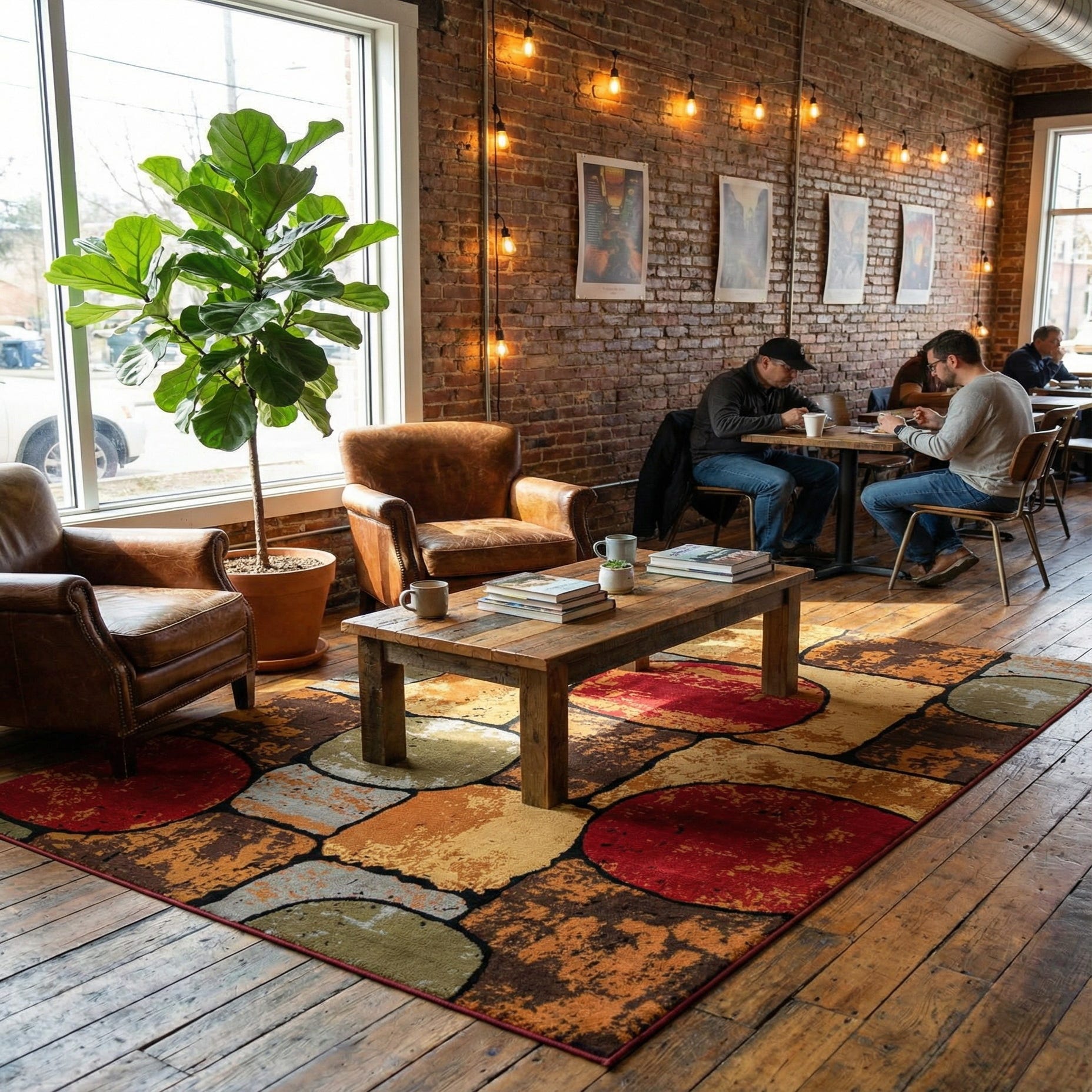 Primary color is Multi. Colors in this rug include: Multi, Beige, Black, Brown, Burgundy, Gray, Light Brown, Olive.
