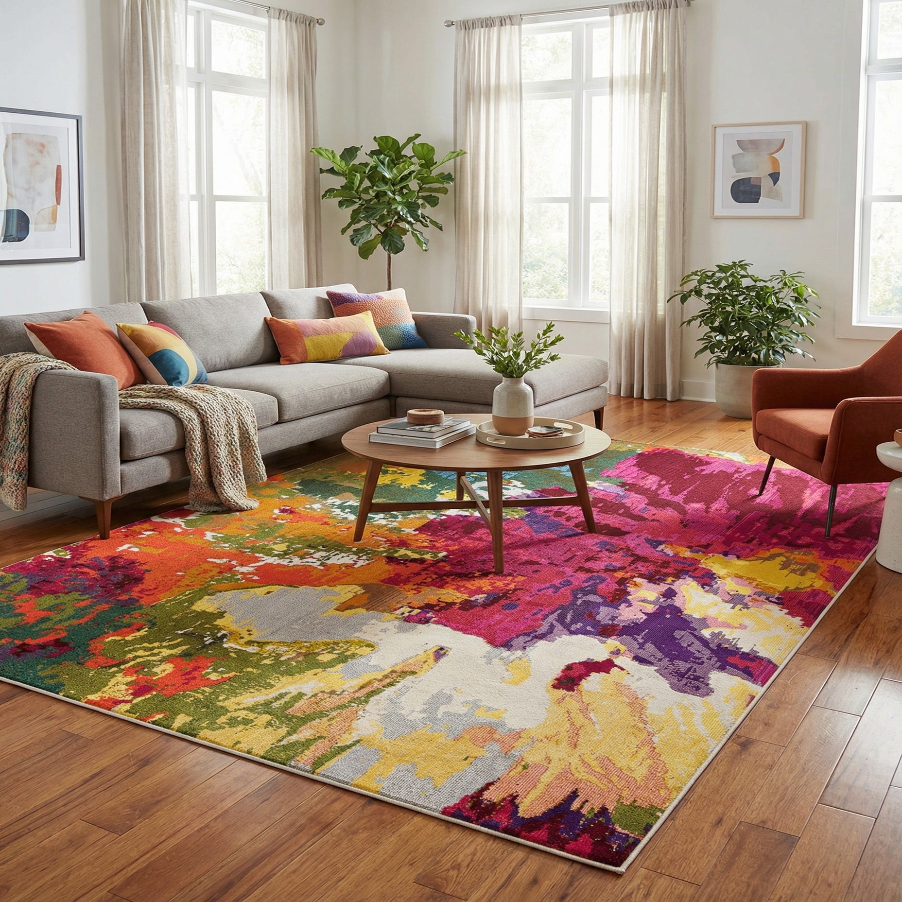 Primary color is Multi. Colors in this rug include: Multi, Beige, Burgundy, Gray, Green, Purple, Red, Pink, Violet.