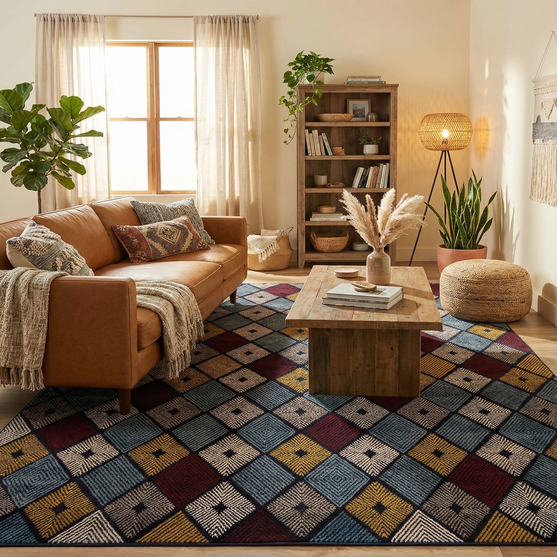 Primary color is Multi. Colors in this rug include: Multi, Blue, Ivory, Gray, Red, Yellow, Navy Blue.