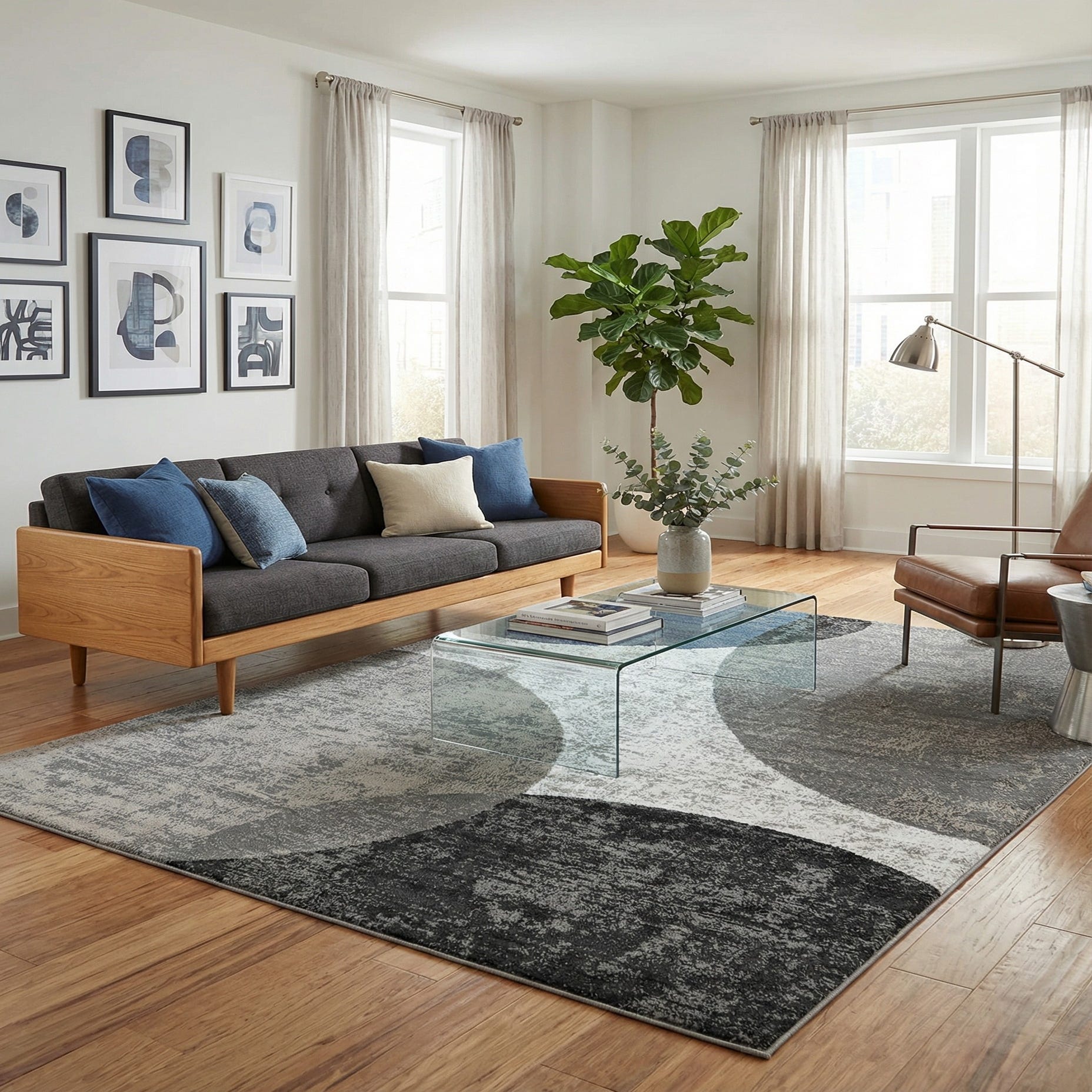 Primary color is Multi. Colors in this rug include: Multi, Black, Gray, Blue, Ivory.