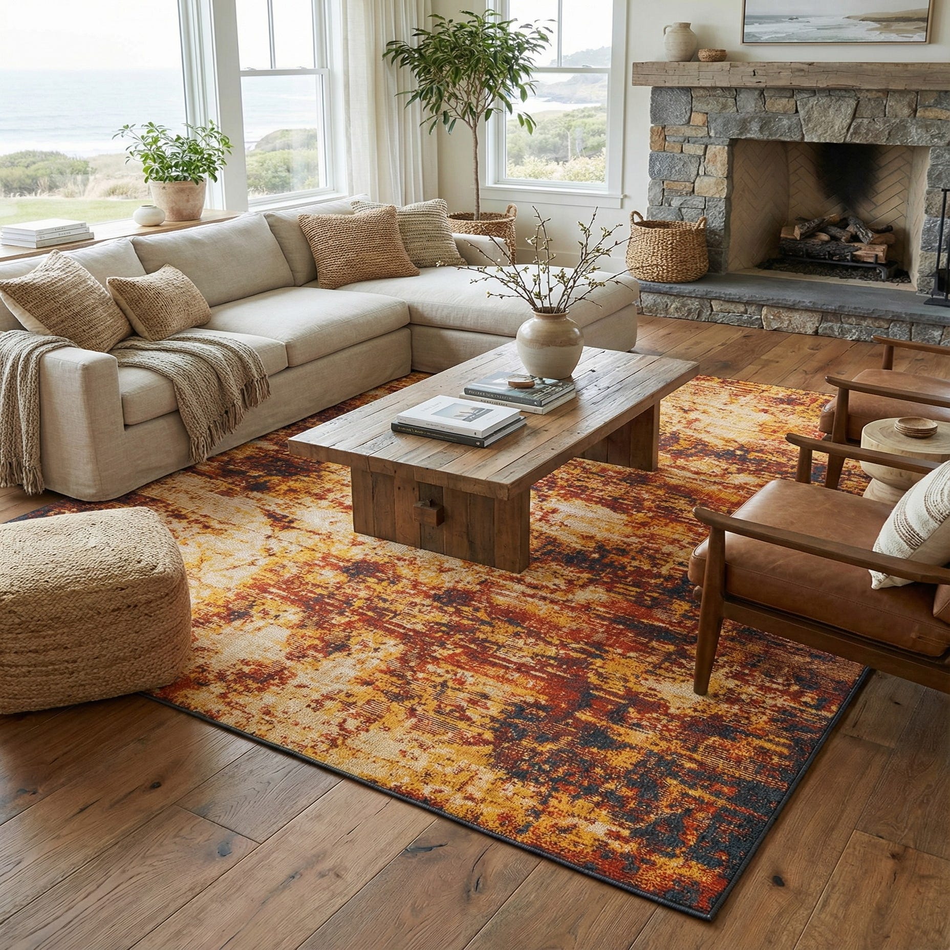 Primary color is Multi. Colors in this rug include: Multi, Navy Blue, Terracotta, Yellow, Ivory.
