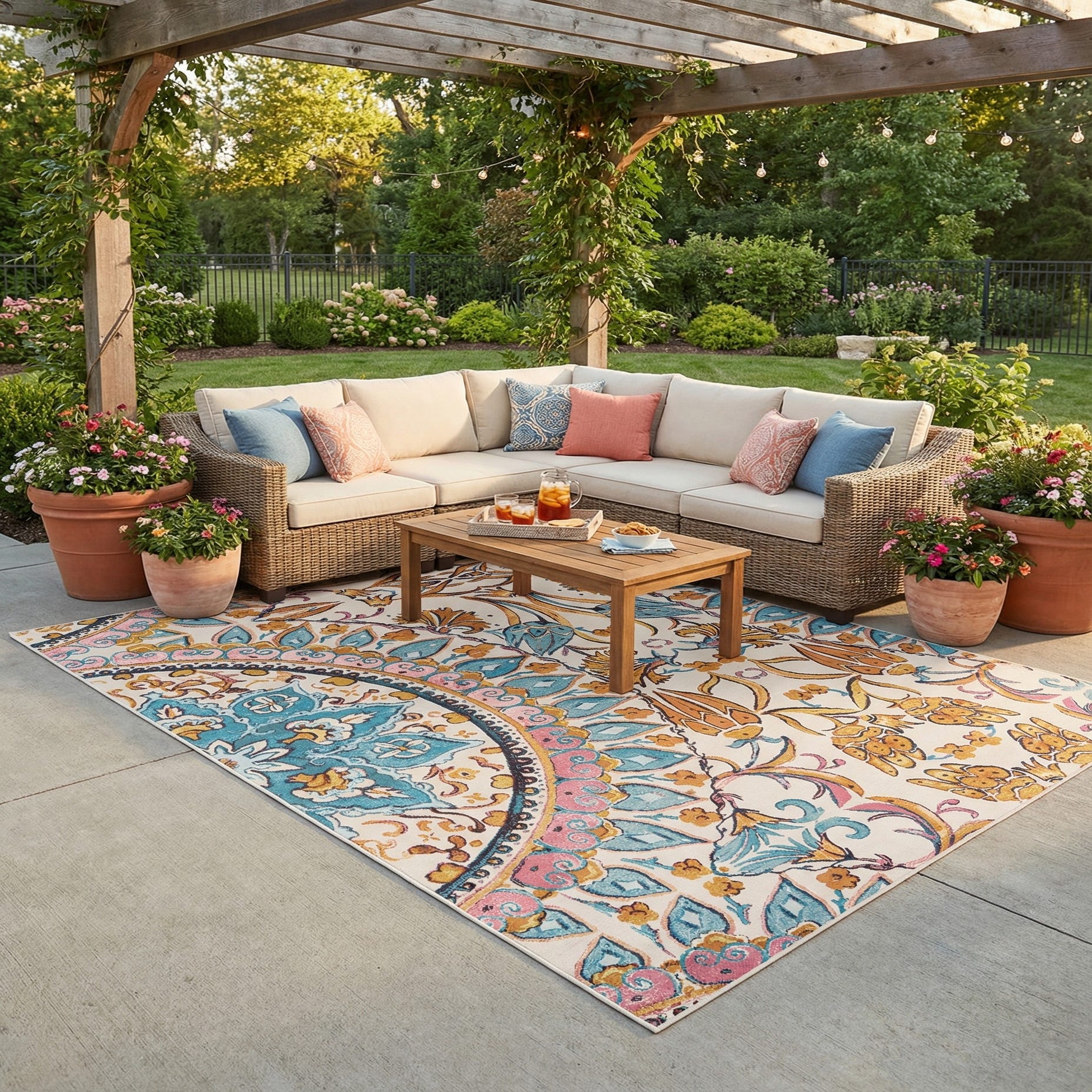 Detail image of 9' x 12'  Washable Traditional Indoor / Outdoor Rug