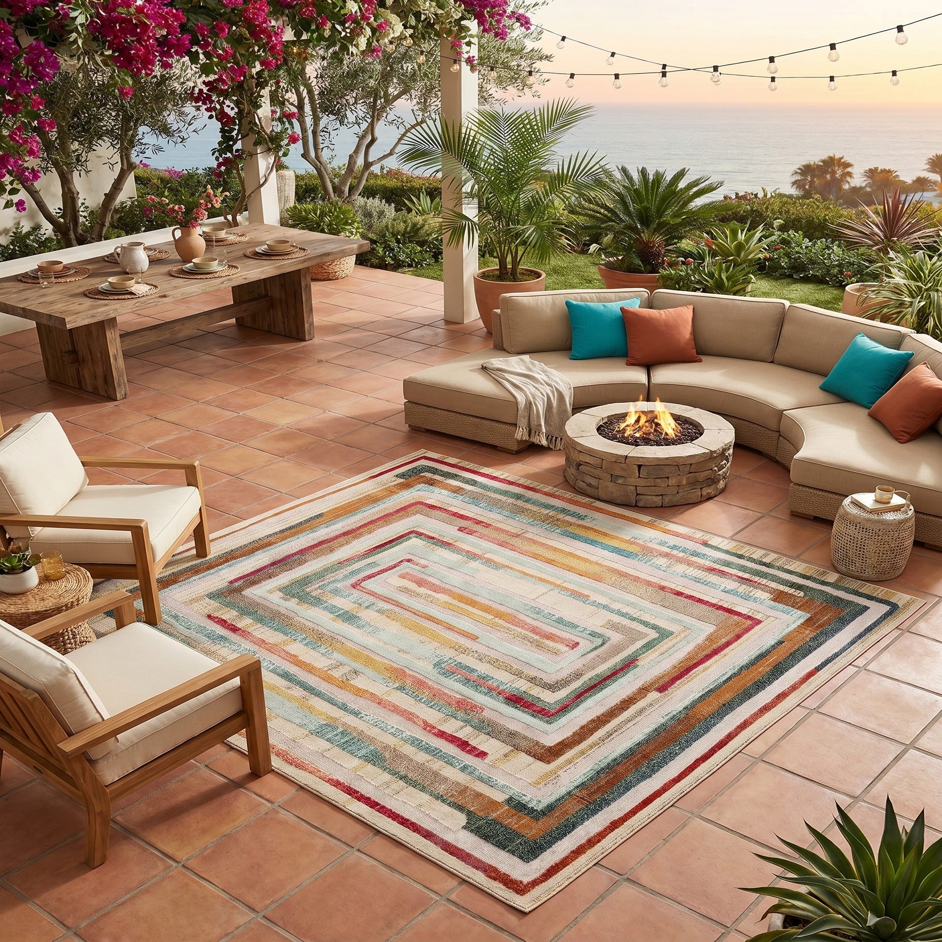 7' 10 x 7' 10 Easy-Clean Casablanca Indoor / Outdoor Square Rug