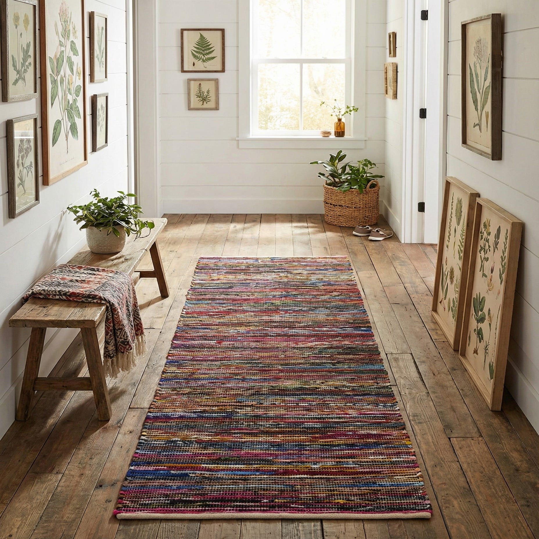 Detail image of 2' 7 x 10'  Hand Woven Chindi Cotton Runner Rug