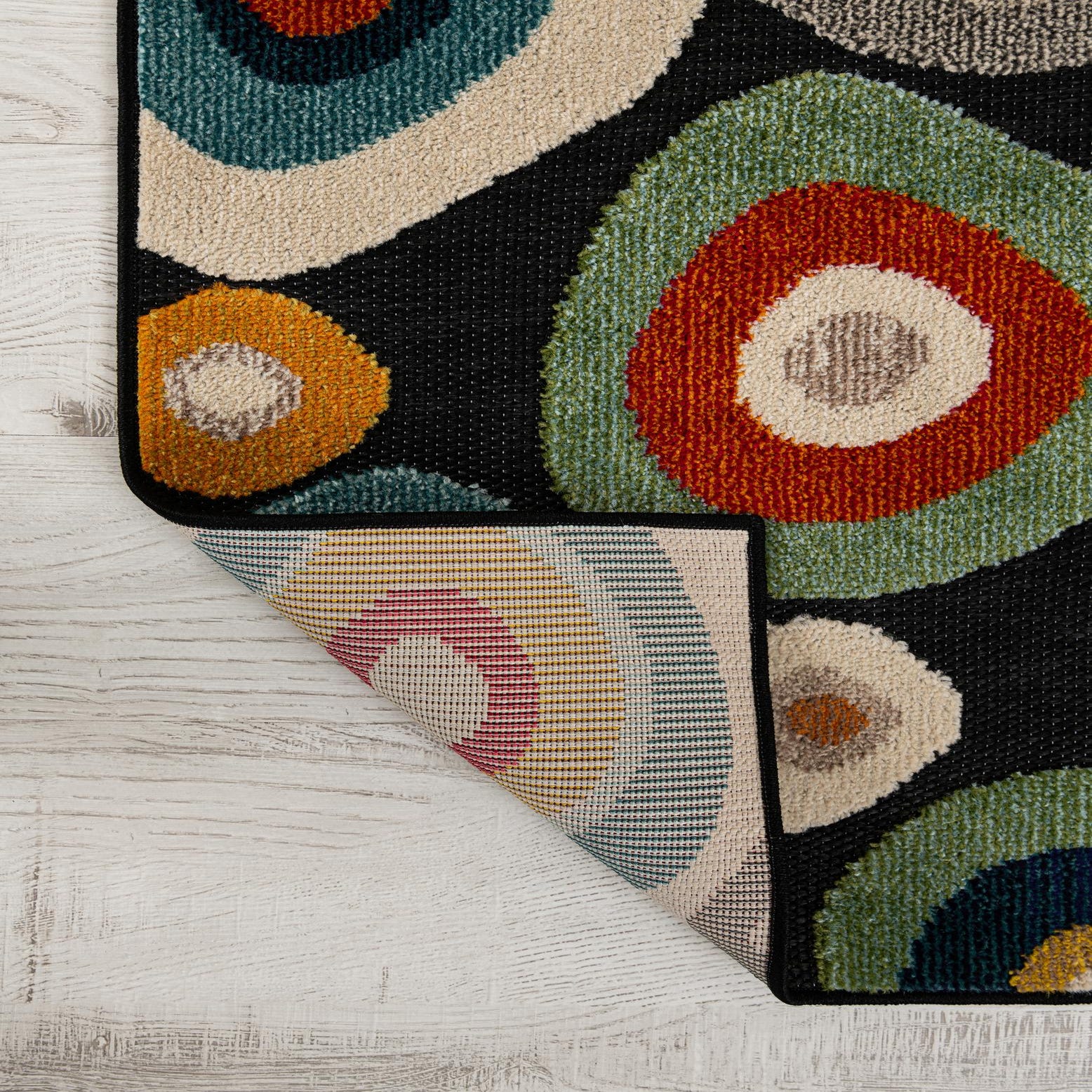 Primary color is Multi Black. Colors in this rug include: Multi Black, Beige, Blue, Gold, Gray, Ivory, Light Blue, Navy Blue, Red, Orange, Green.