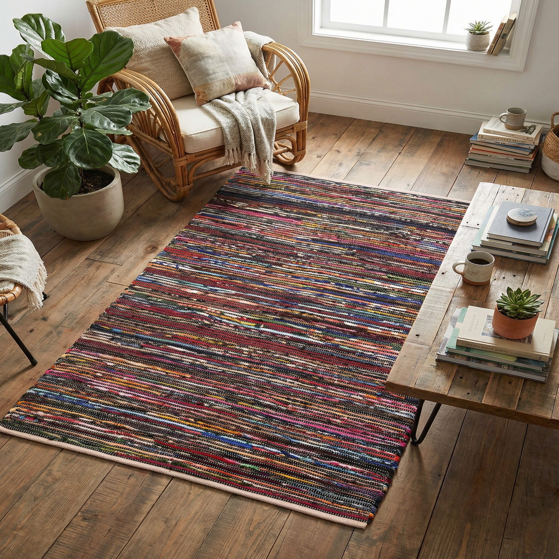 4' 1 x 6' 1 Hand Woven Chindi Cotton Rug