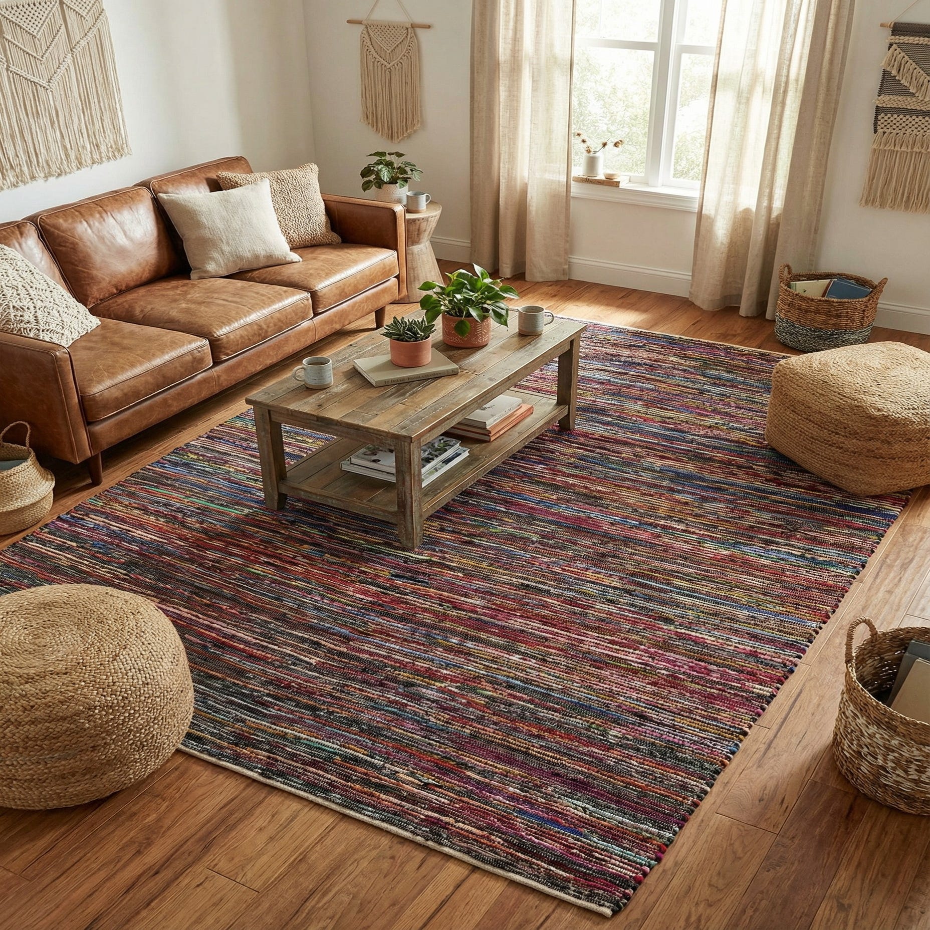 Detail image of 9' x 12'  Hand Woven Chindi Cotton Rug