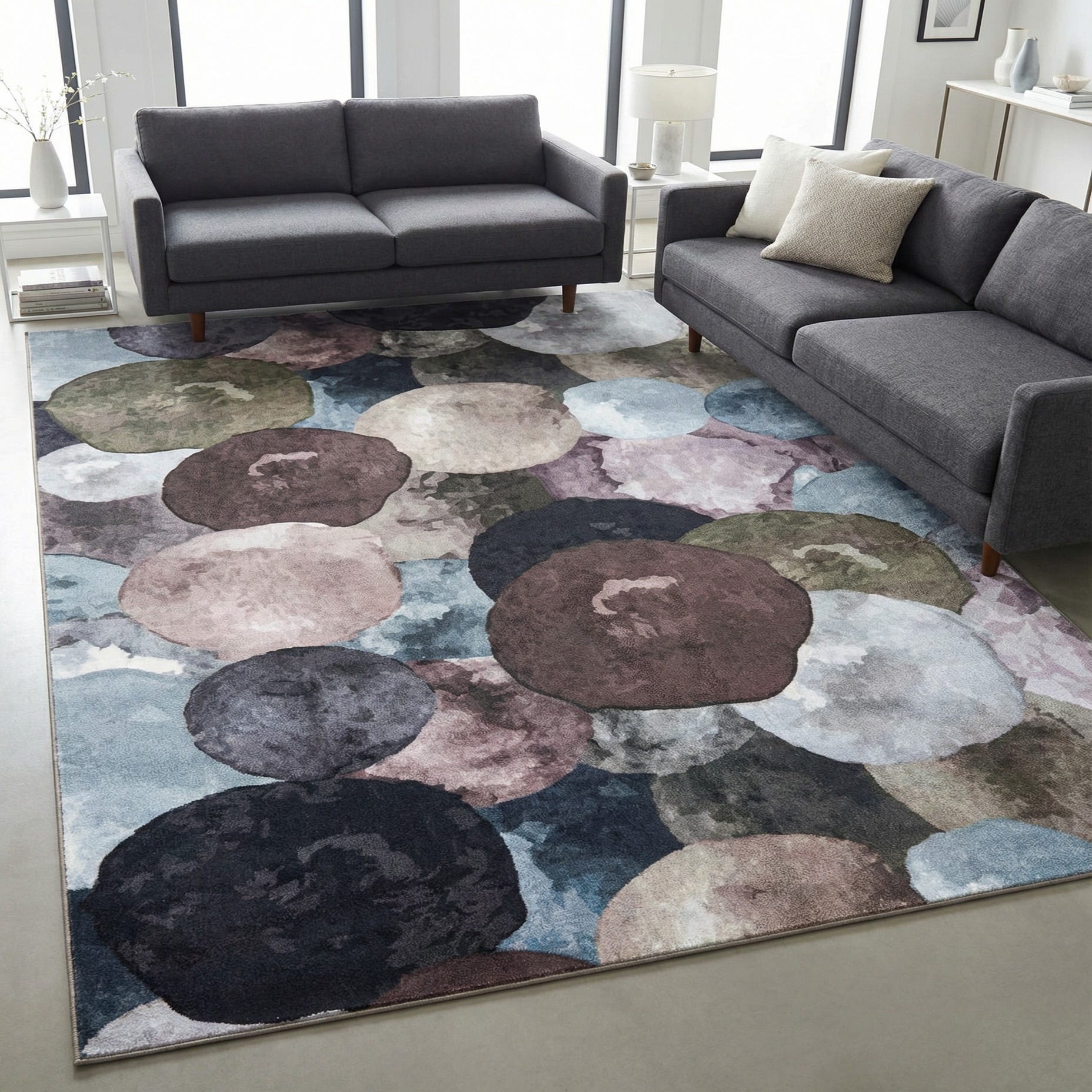 • Cool grey fabric sectional