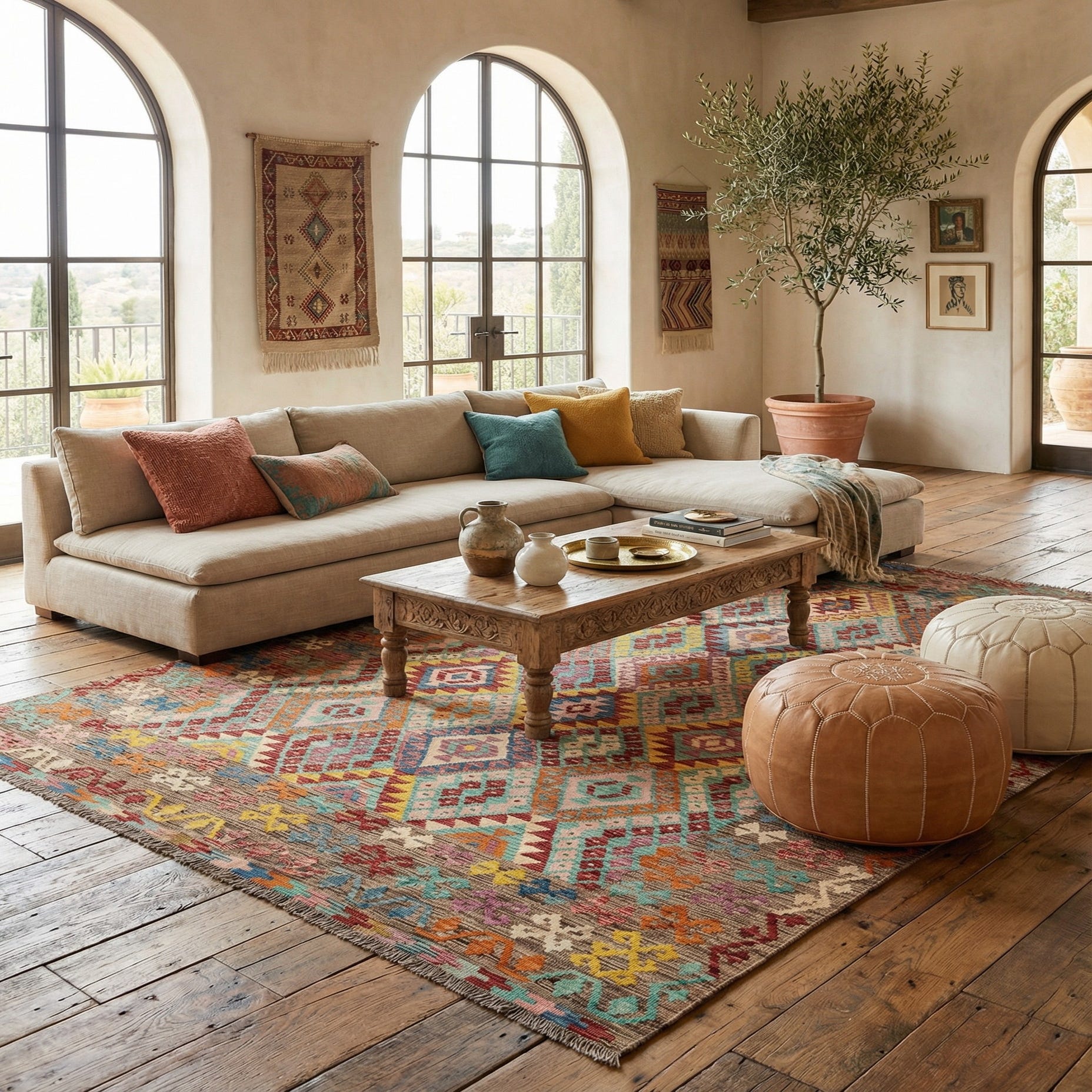 7' 1 x 9' 5 Hand Knotted Marok Kilim Rug