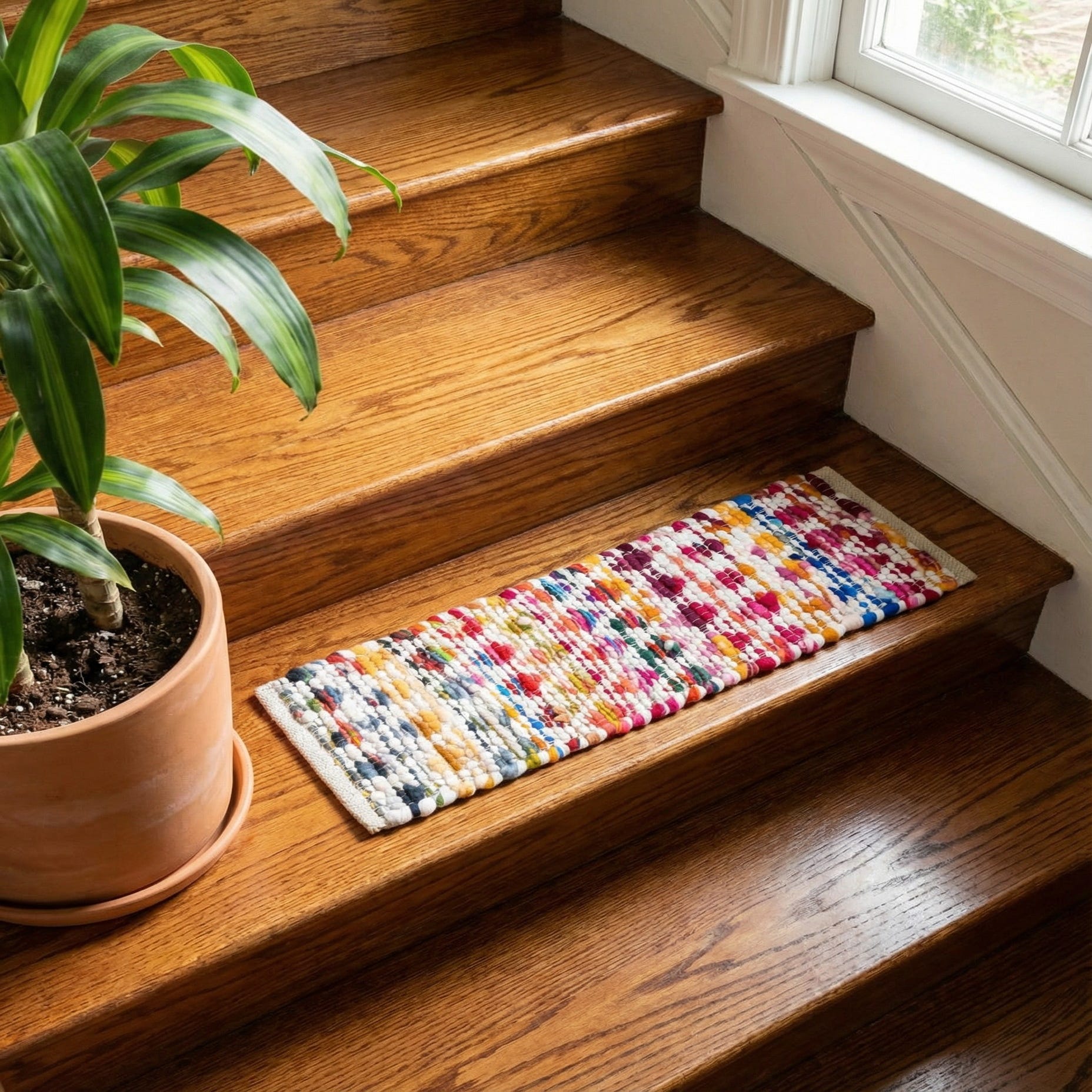 0' 9 x 2' 6 Hand Braided Chindi Stair Rug