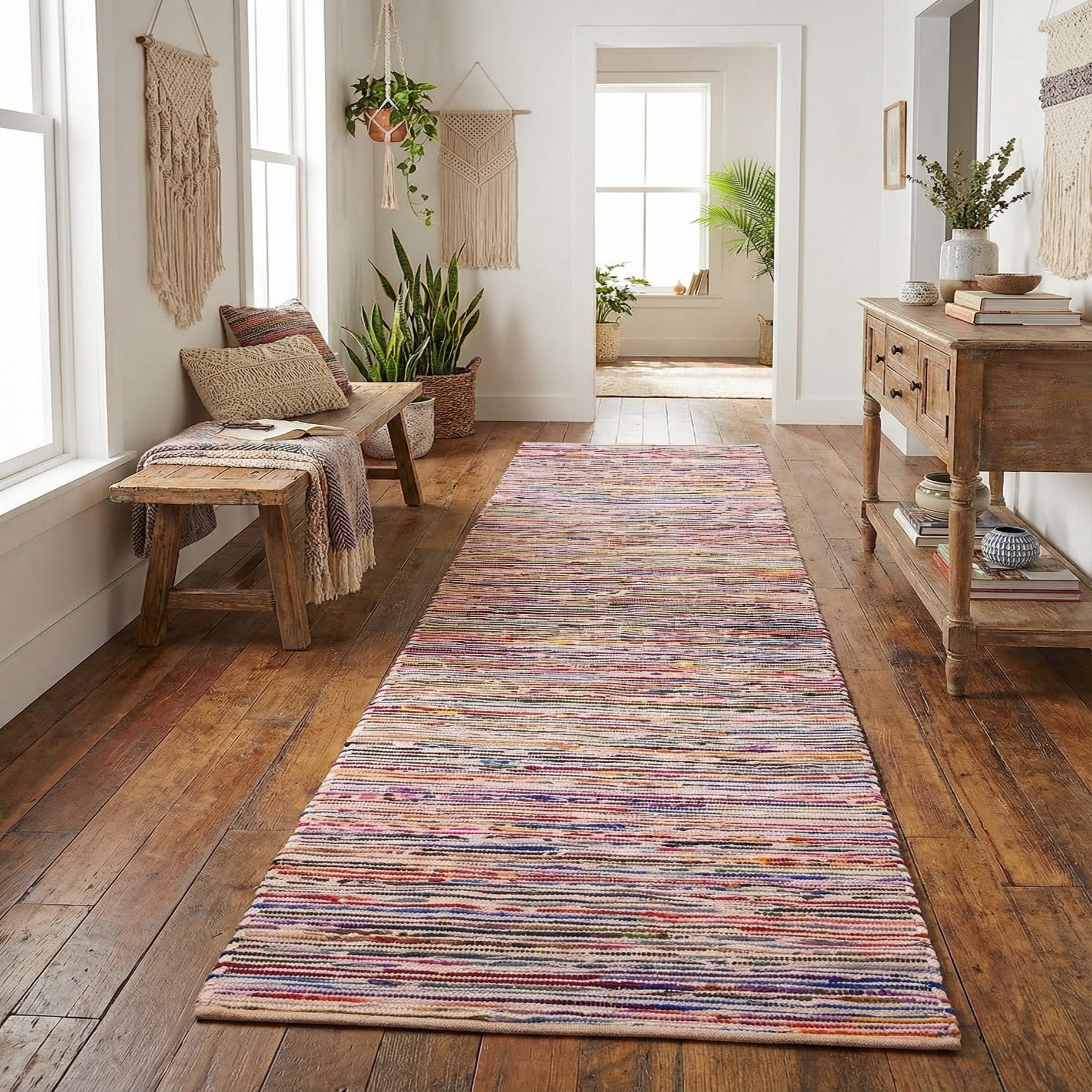 Detail image of 2' 7 x 12'  Hand Woven Chindi Cotton Runner Rug