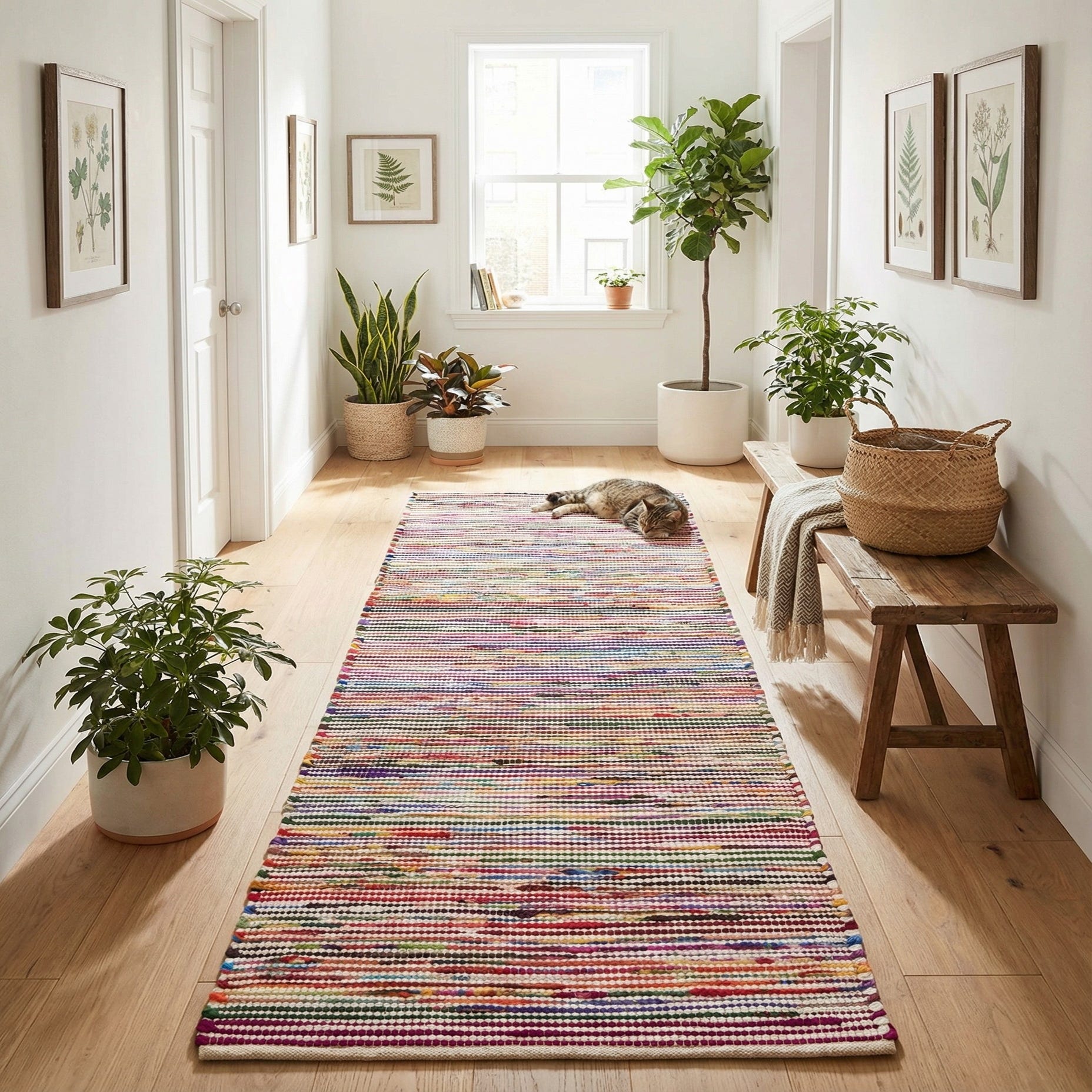 2' x 6' 1 Hand Woven Chindi Cotton Runner Rug