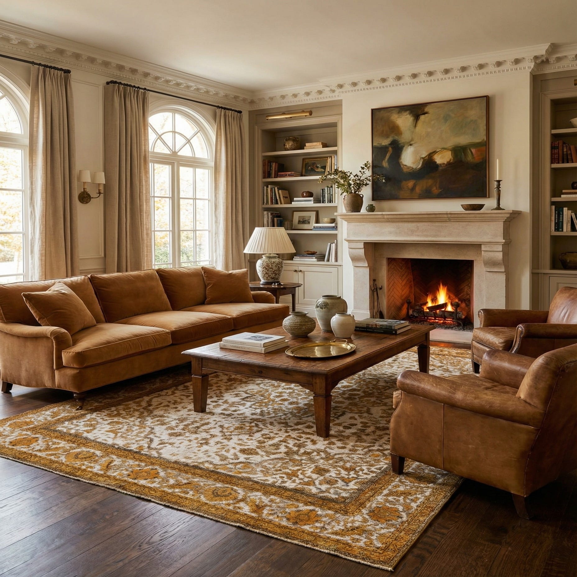 Primary color is Mustard Yellow. Colors in this rug include: Mustard Yellow, Black, Ivory, Brown.
