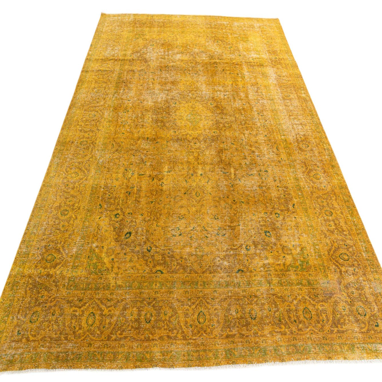 This Persian Ultra Vintage rug is an antique Persian Rug that has been washed, over-dyed, and then shaved down to a low pile. Look at the detail pictures to fully appreciate the uniqueness of this piece.