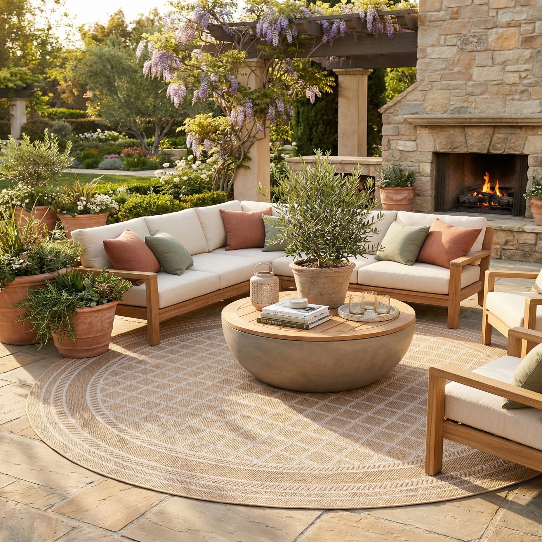 10' x 10' Washable Trellis Indoor / Outdoor Round Rug
