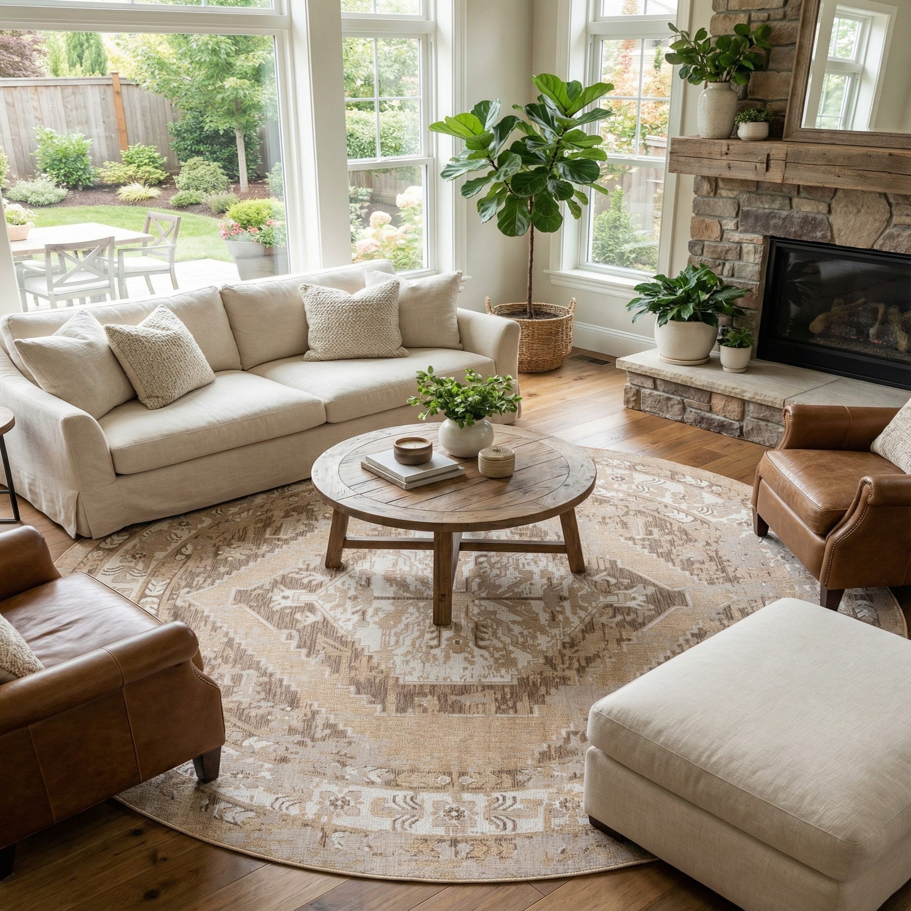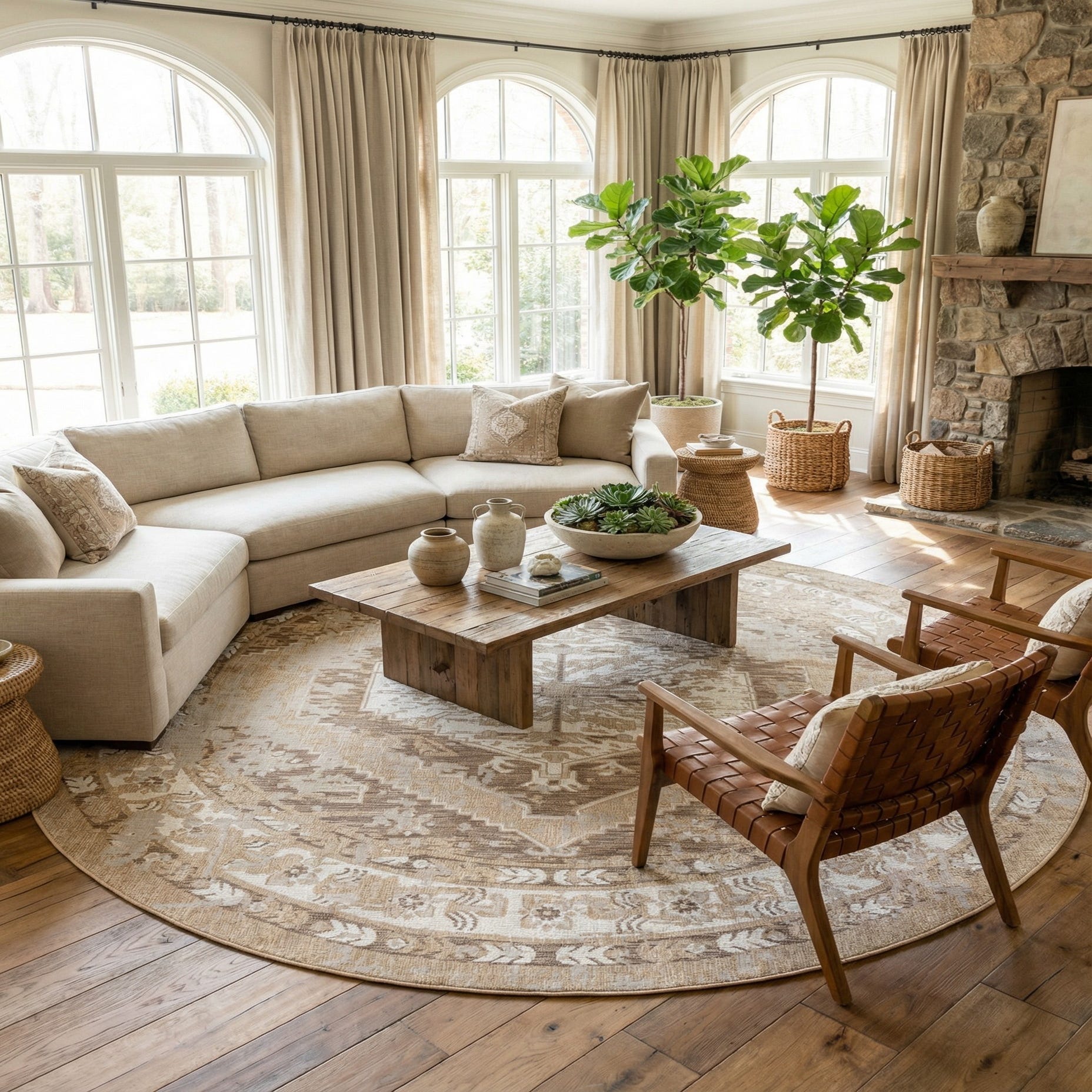 Primary image 13' x 13'  Washable Traditional Indoor / Outdoor Round Rug