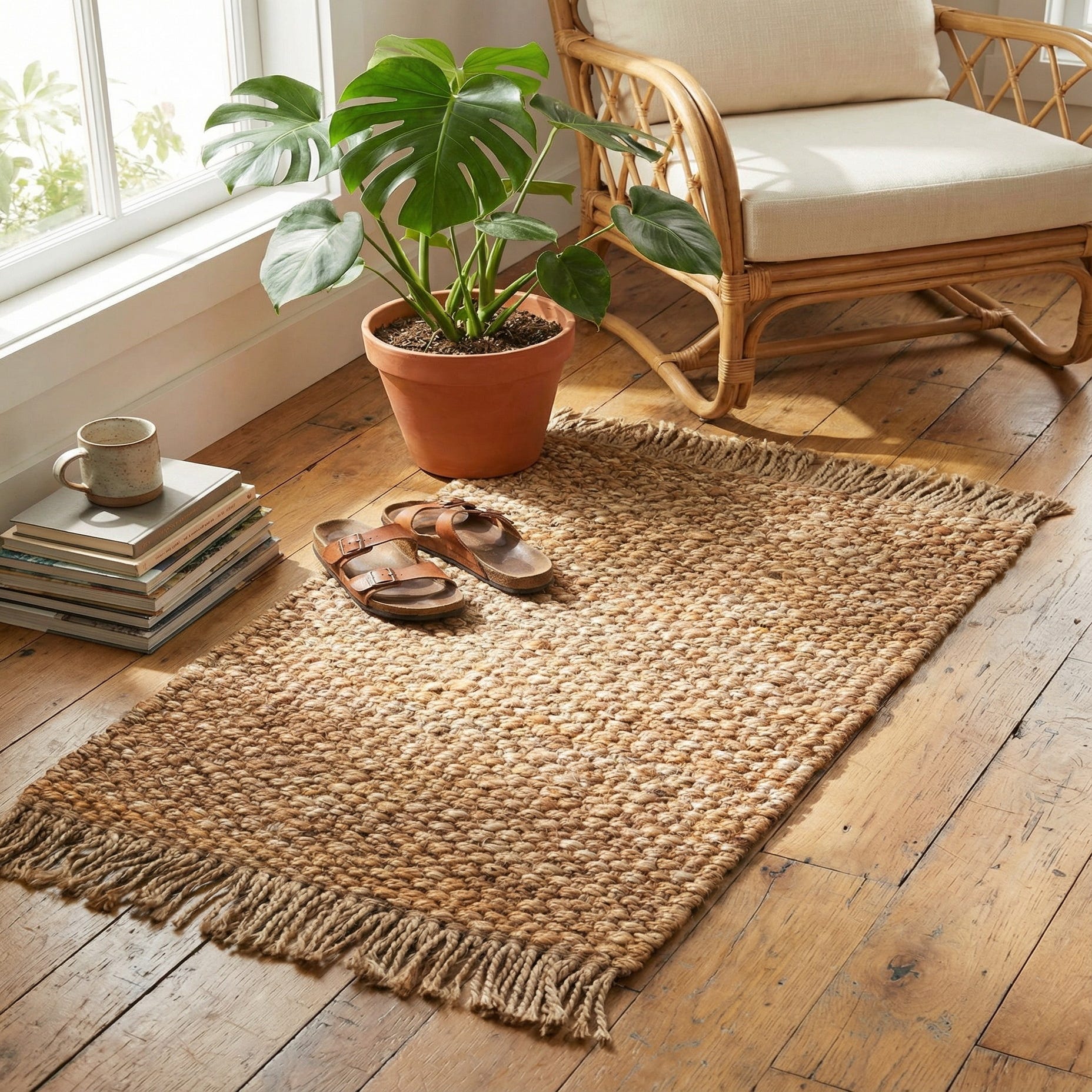 2' x 3' 1 Hand Woven Chunky Jute Rug