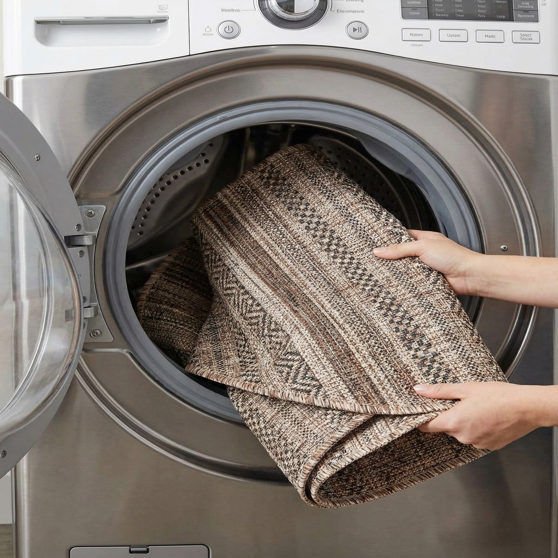 3' x 3' Washable Striped Indoor / Outdoor Round Rug