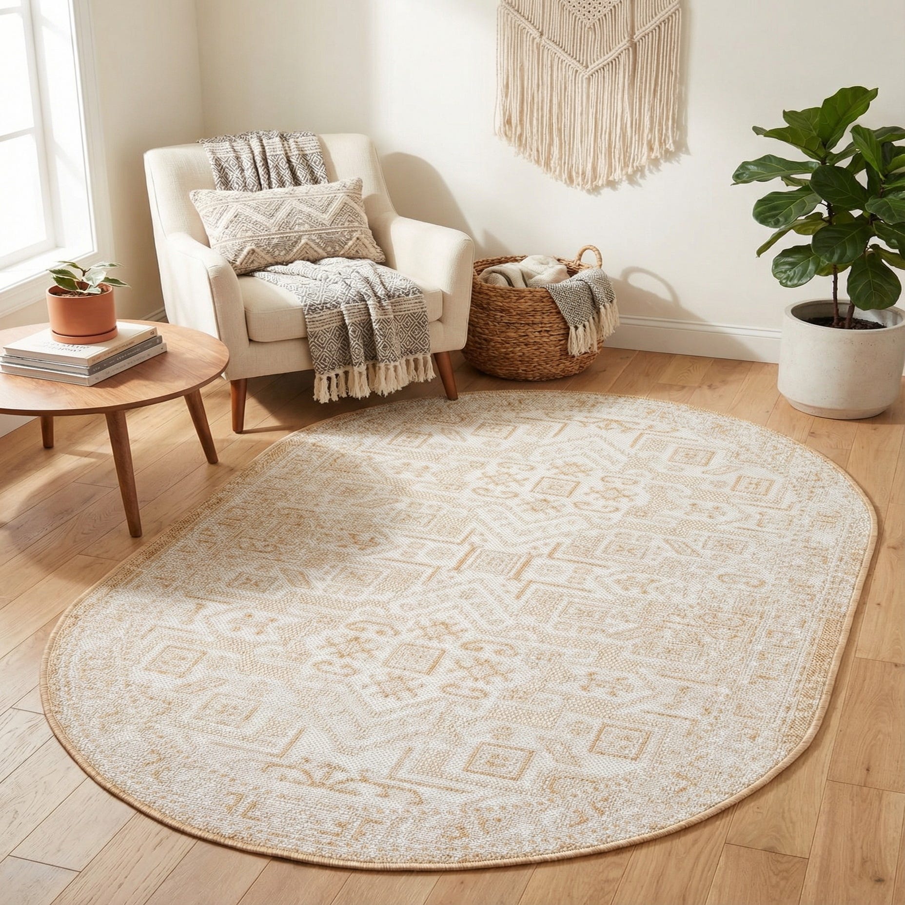 3' x 5' 3 Washable Aztec Indoor / Outdoor Oval Rug