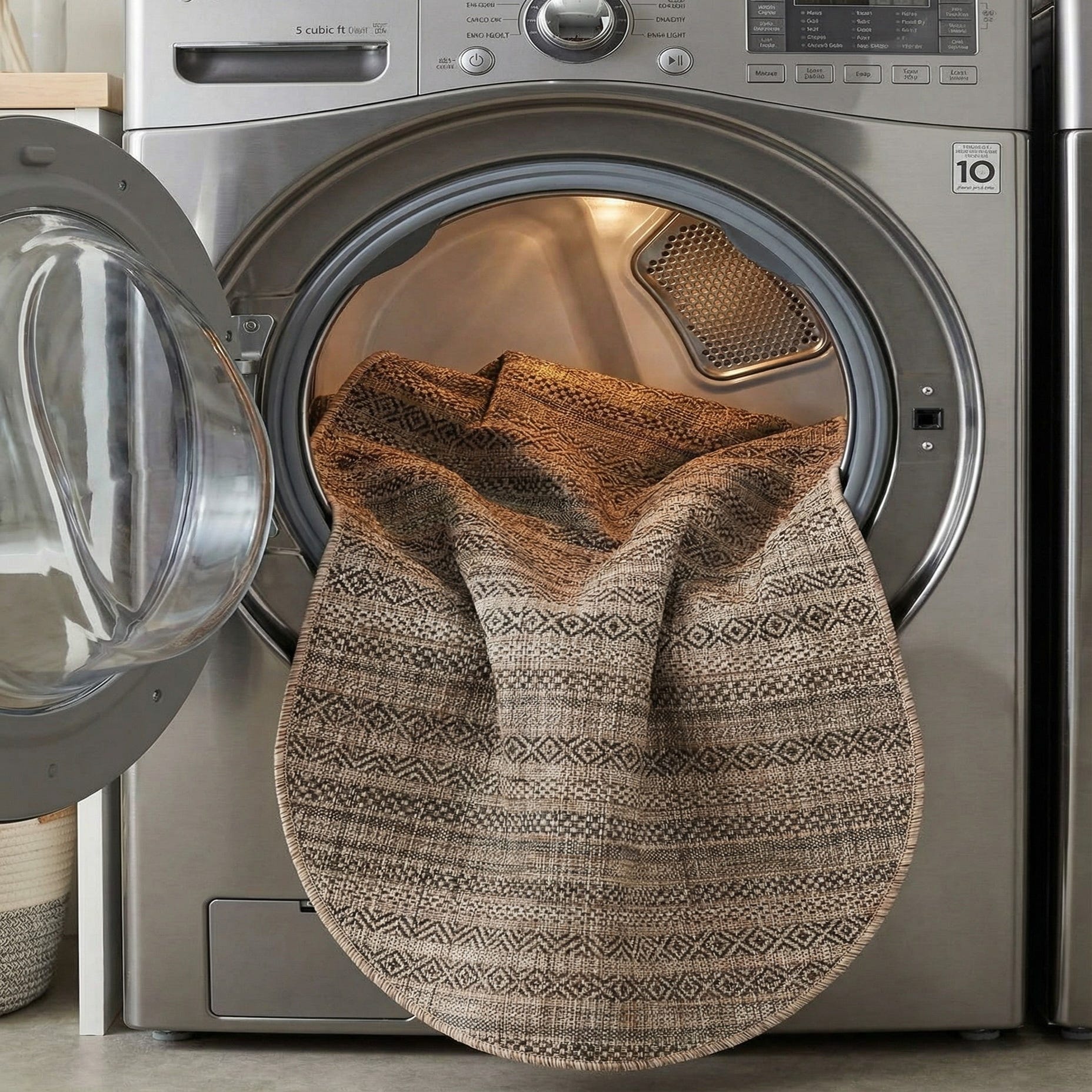 3' x 5' 3 Washable Striped Indoor / Outdoor Oval Rug