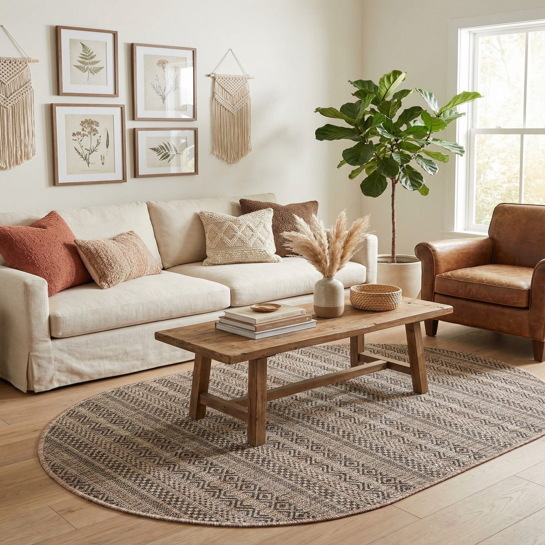 Primary color is Natural. Colors in this rug include: Natural, Black, Ivory.