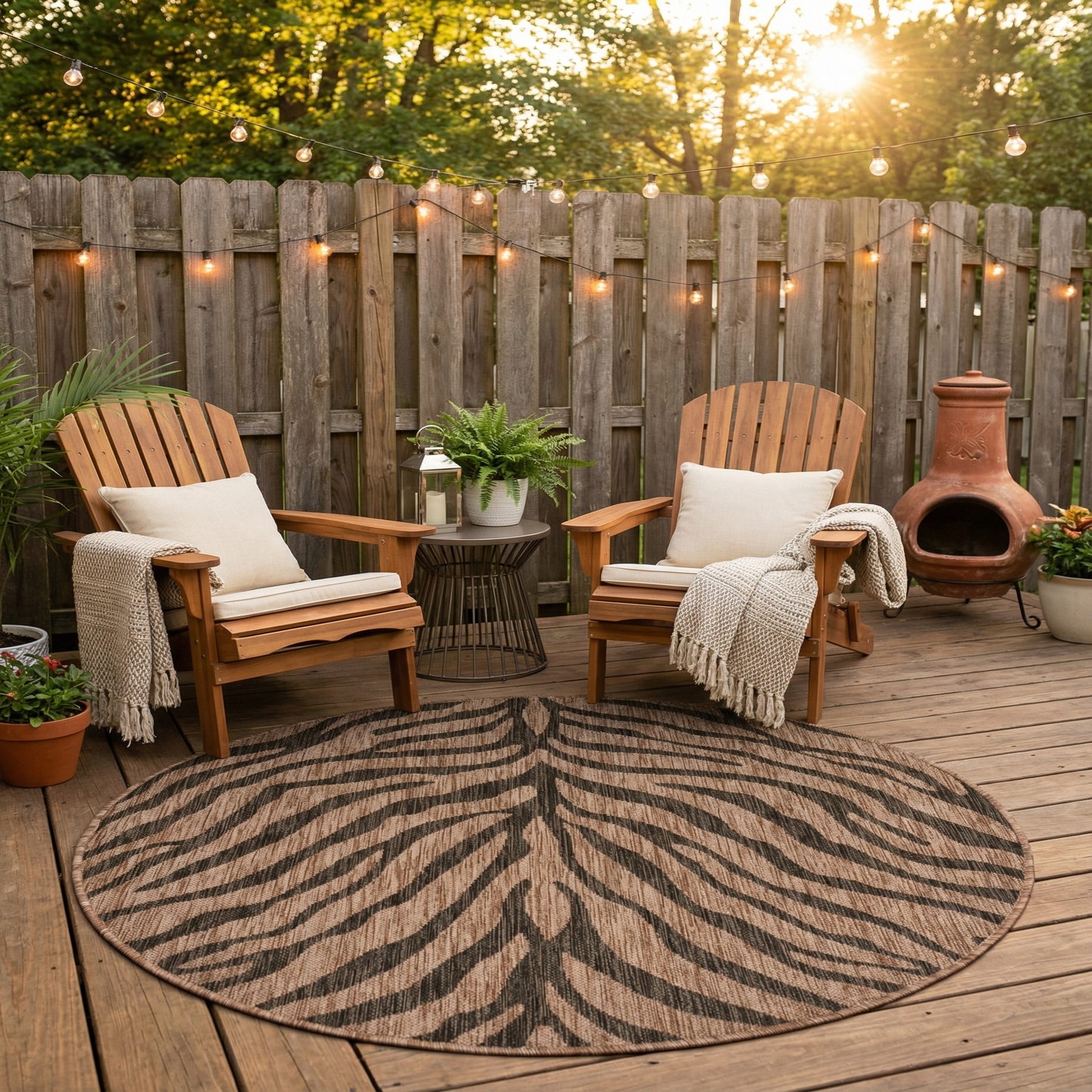 4' x 4' Washable Safari Indoor / Outdoor Round Rug