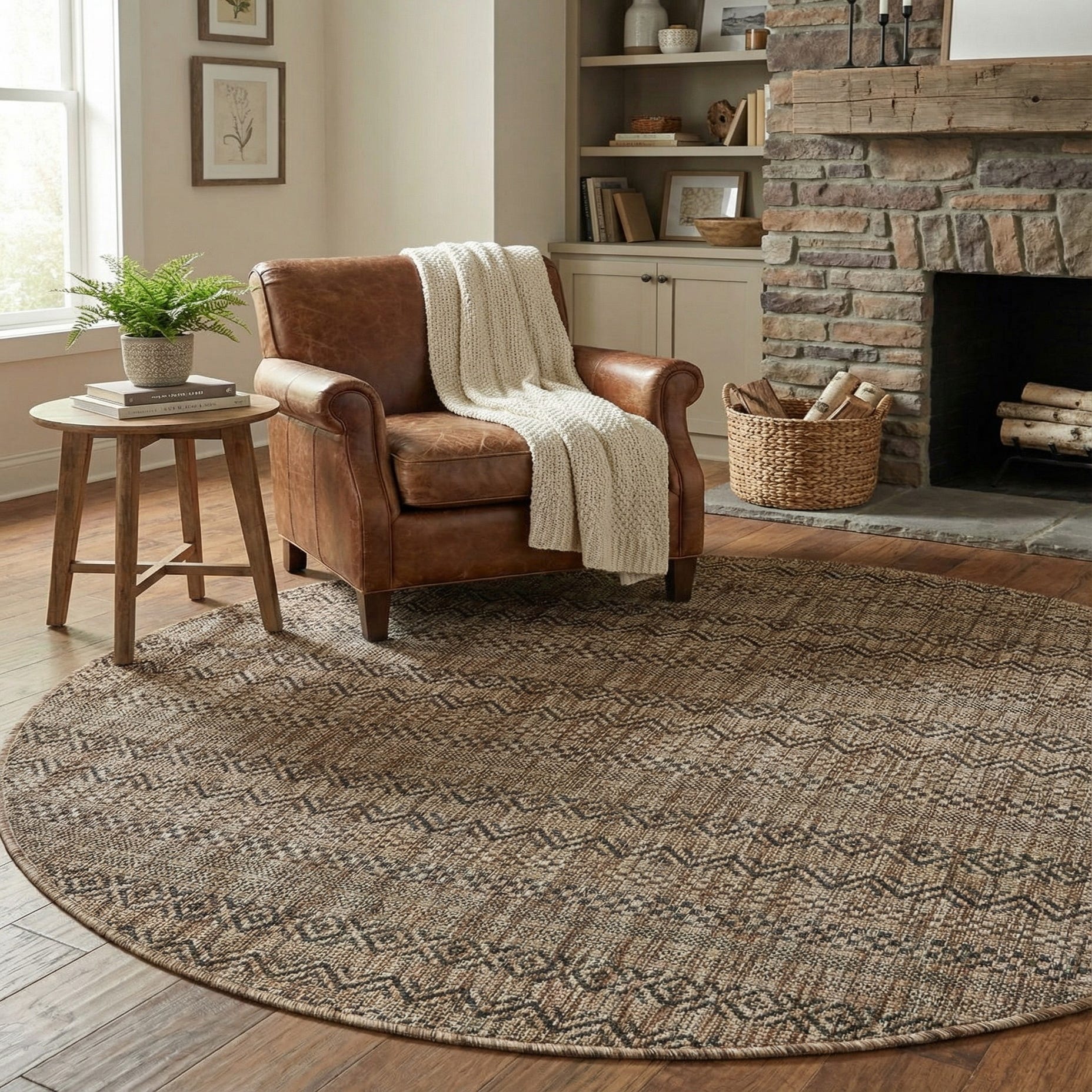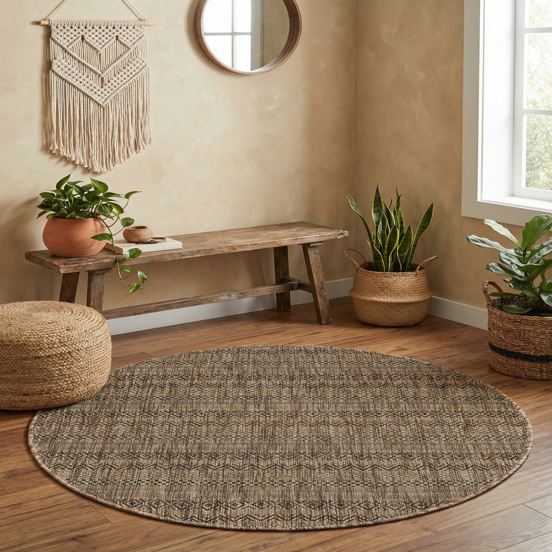 4' x 4' Washable Striped Indoor / Outdoor Round Rug