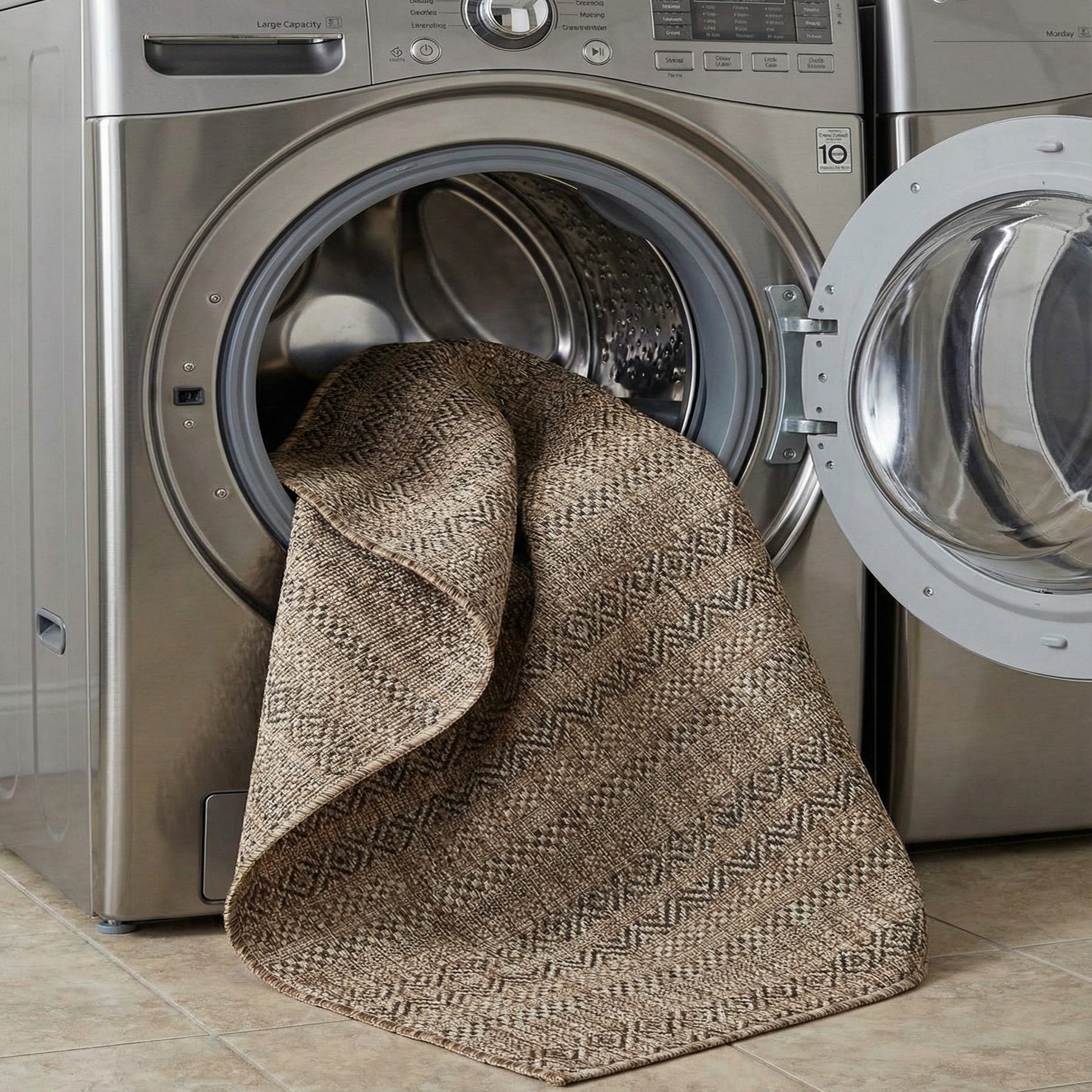 Primary color is Natural. Colors in this rug include: Natural, Black, Ivory.
