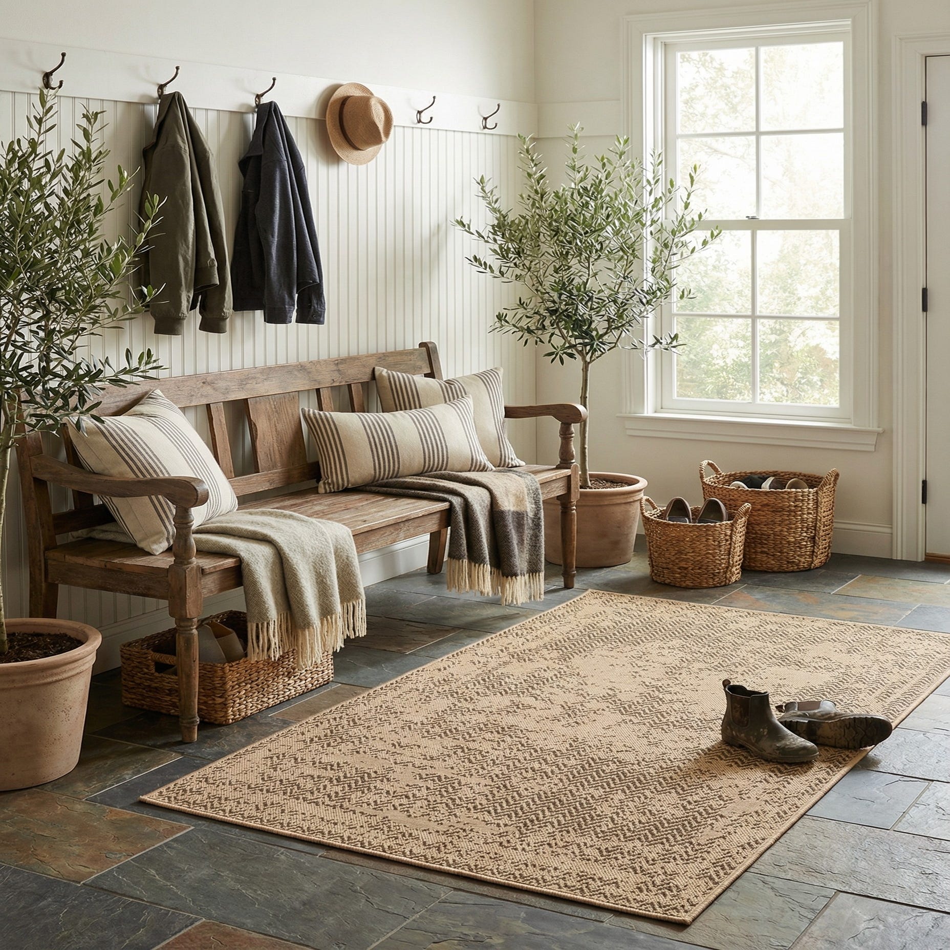 Primary color is Natural. Colors in this rug include: Natural, Brown.