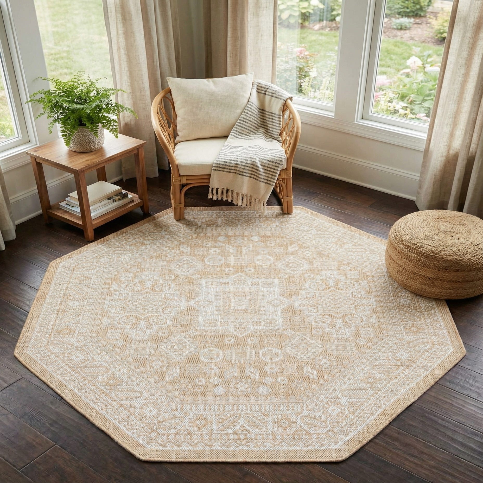 Primary image 5' 3 x 5' 3  Washable Aztec Indoor / Outdoor Octagon Rug