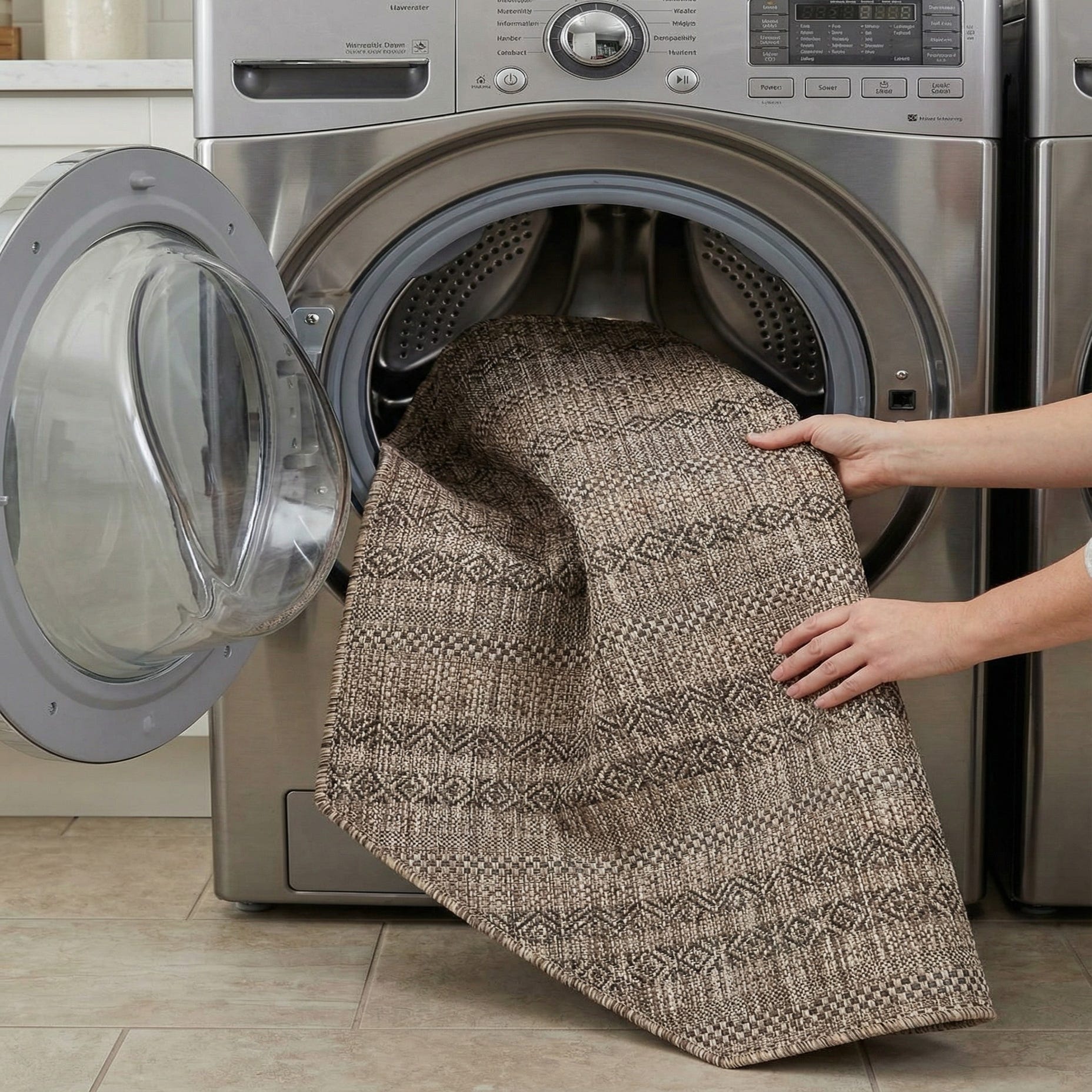 5' 3 x 5' 3 Washable Striped Indoor / Outdoor Octagon Rug
