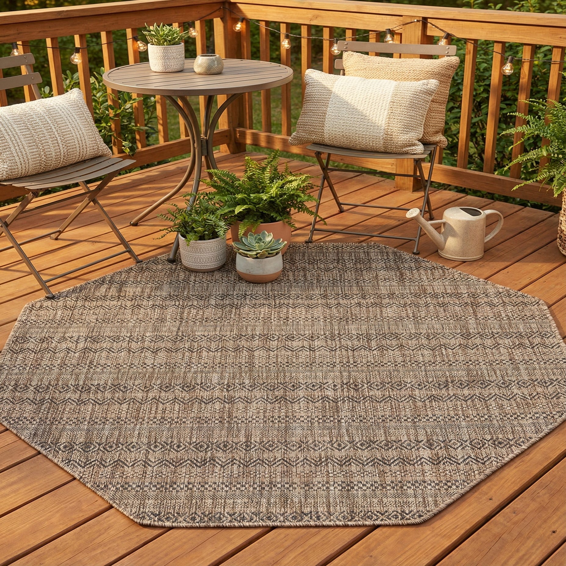 5' 3 x 5' 3 Washable Striped Indoor / Outdoor Octagon Rug
