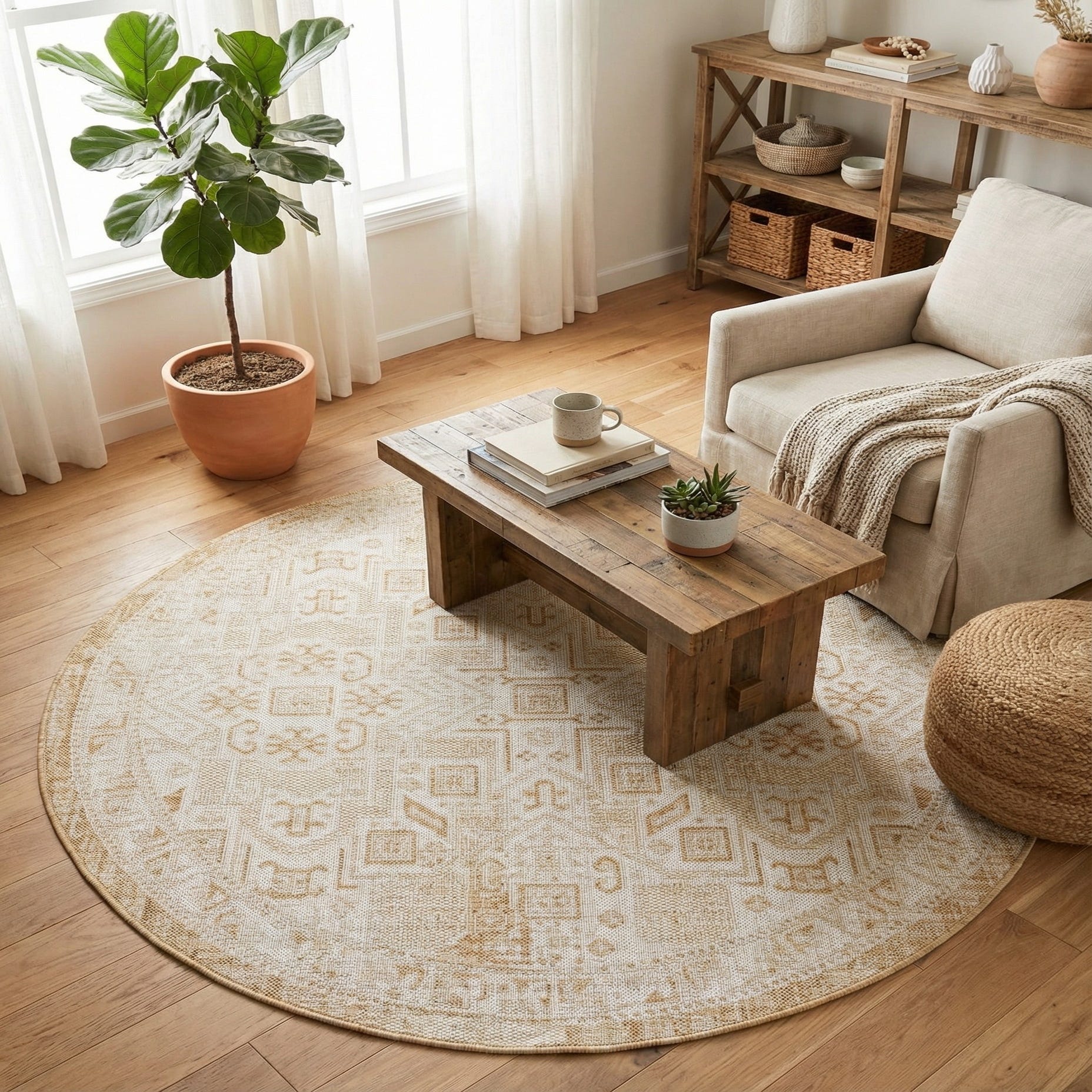 5' 3 x 5' 3 Washable Aztec Indoor / Outdoor Round Rug