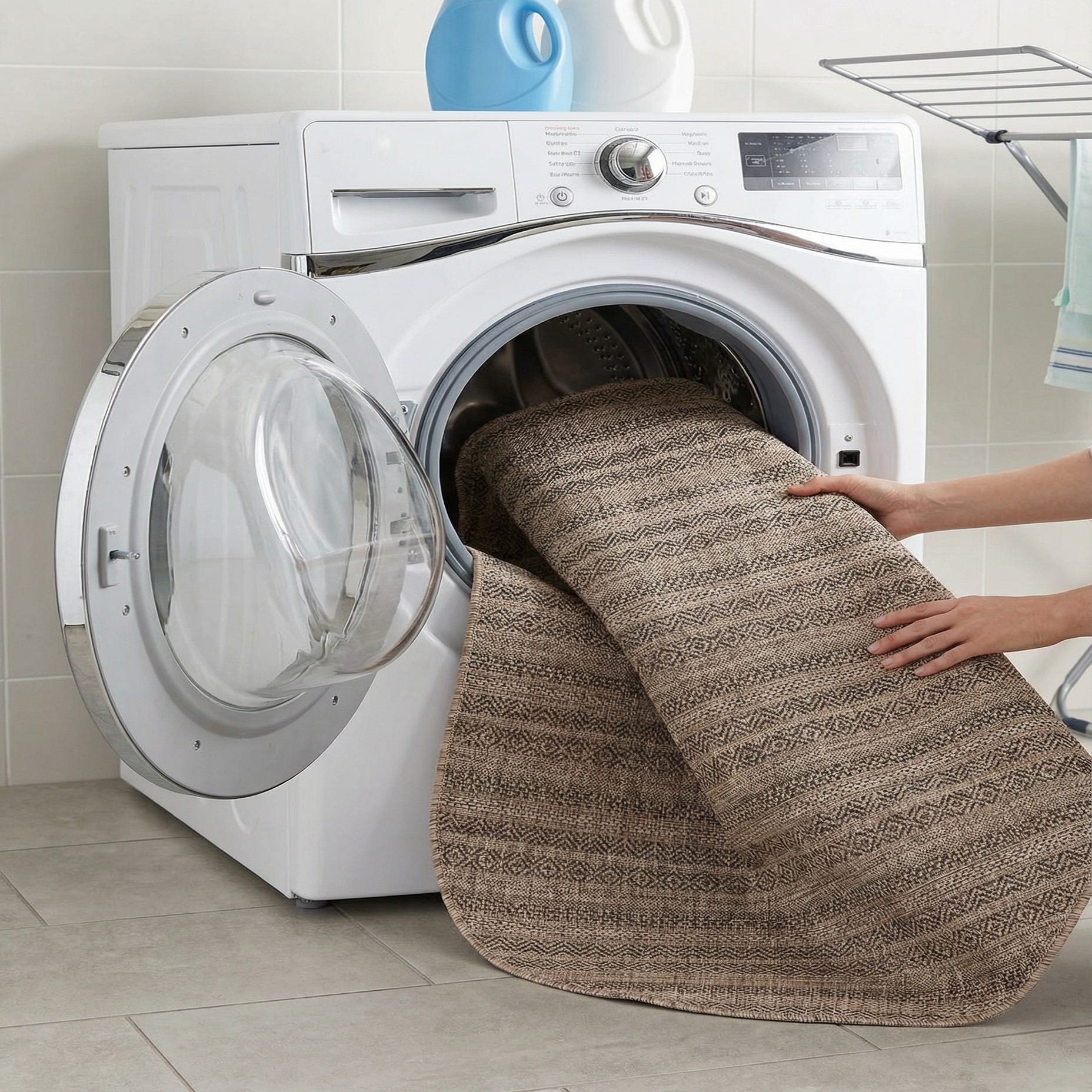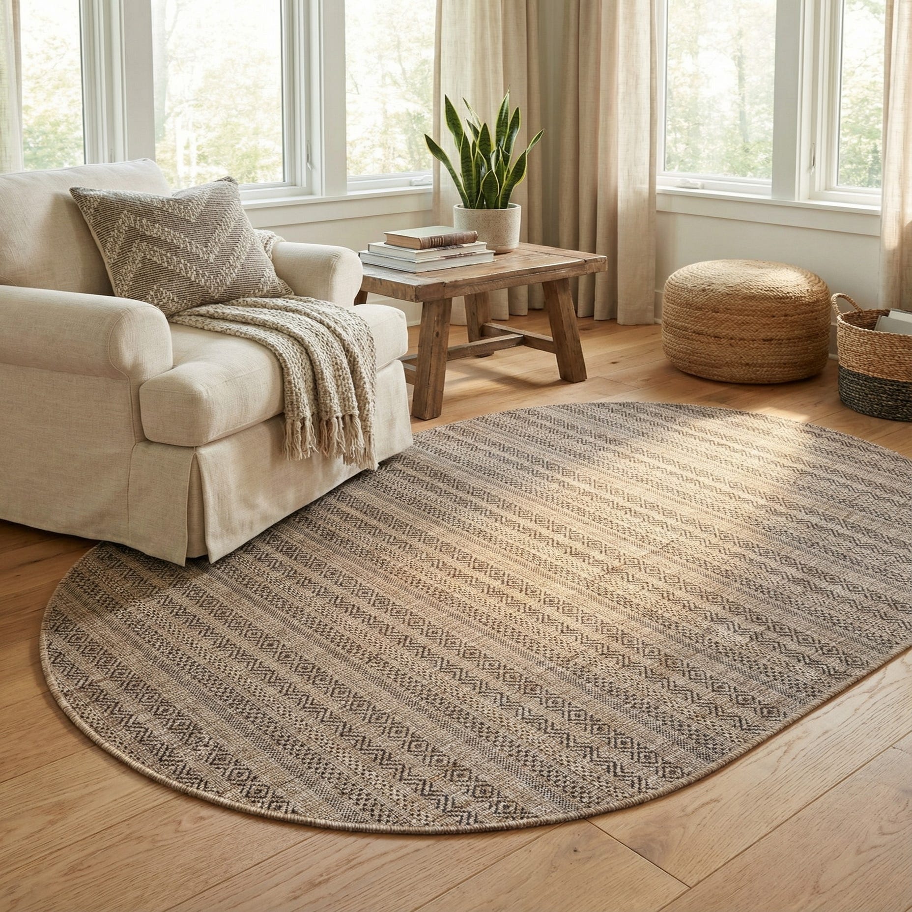 5' 3 x 8' Washable Striped Indoor / Outdoor Oval Rug