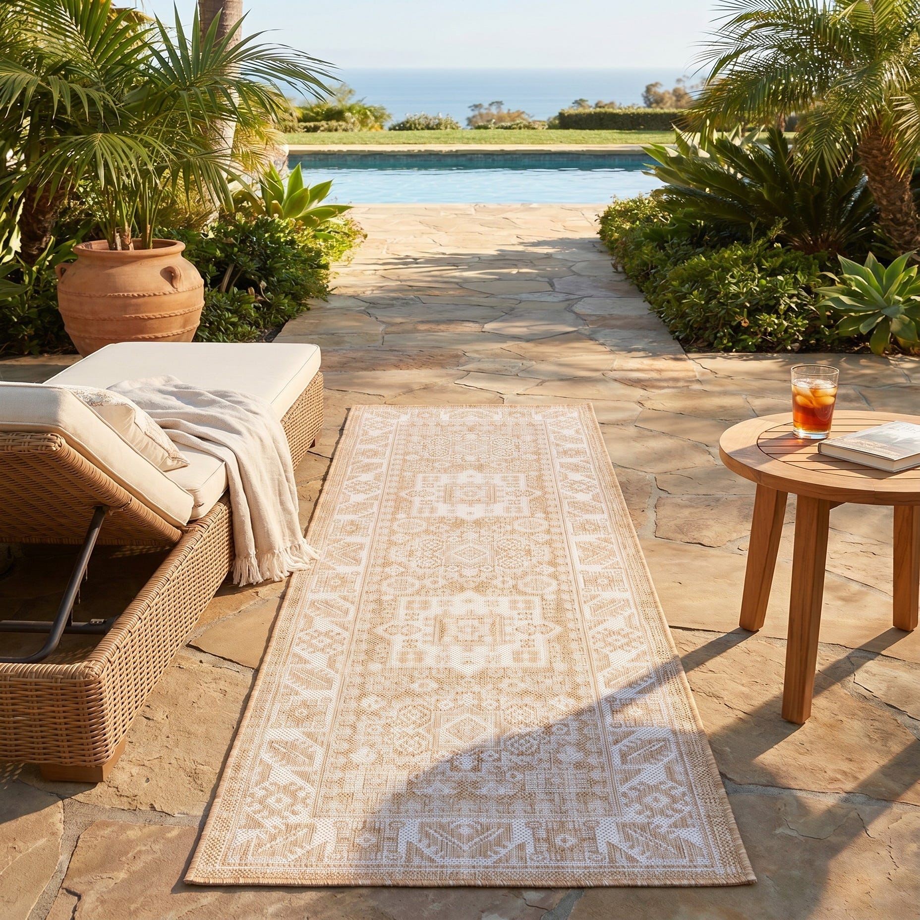 2' x 6' Easy-Clean Aztec Indoor / Outdoor Runner Rug