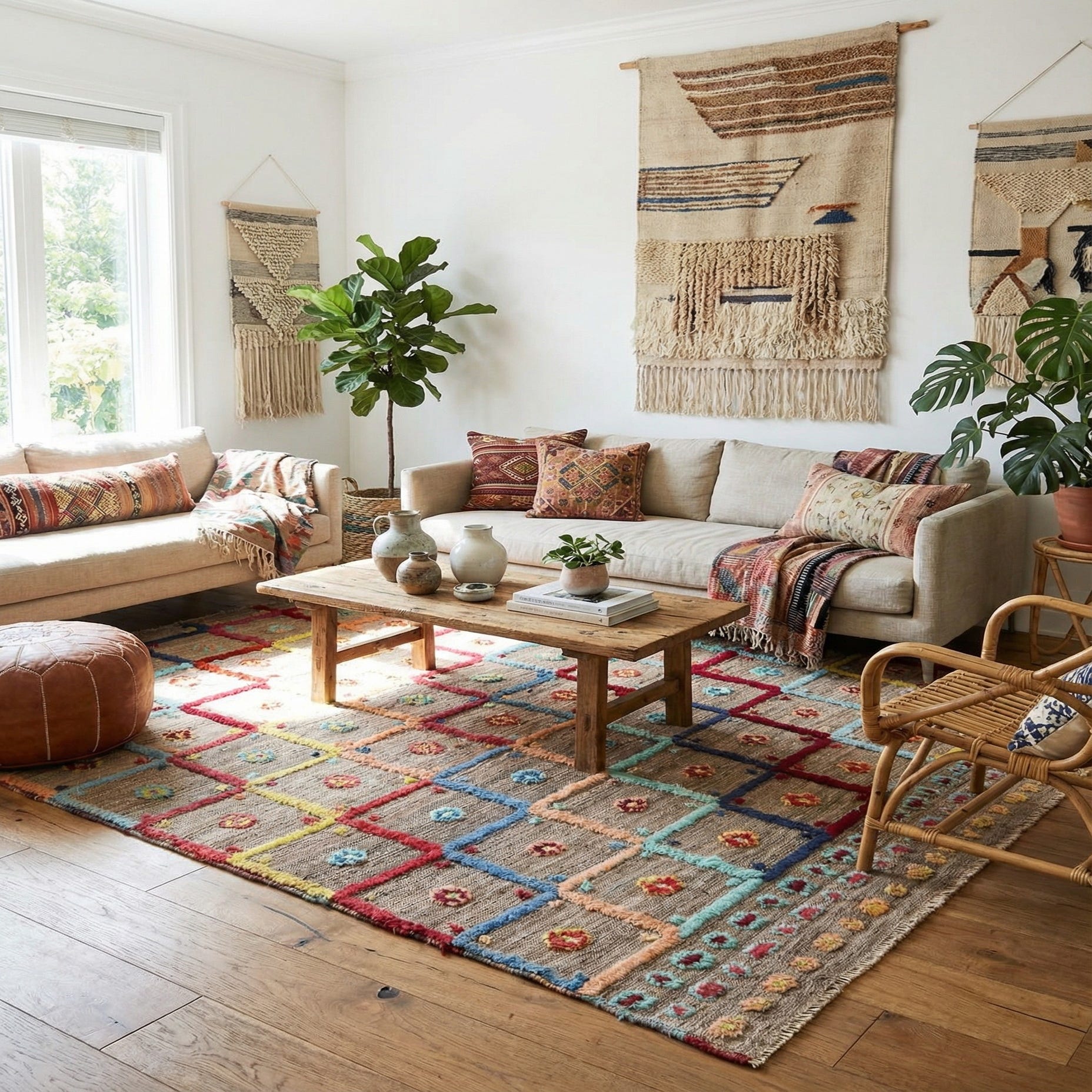 6' 9 x 7' 8 Hand Knotted Moroccan Wool Rug