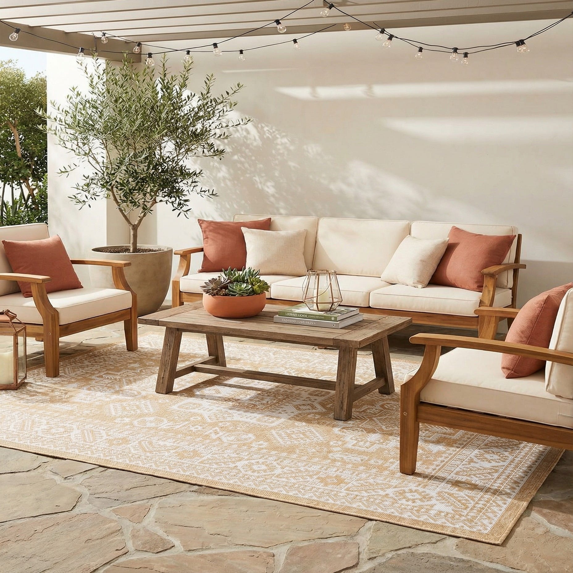 6' x 9' Washable Aztec Indoor / Outdoor Rug