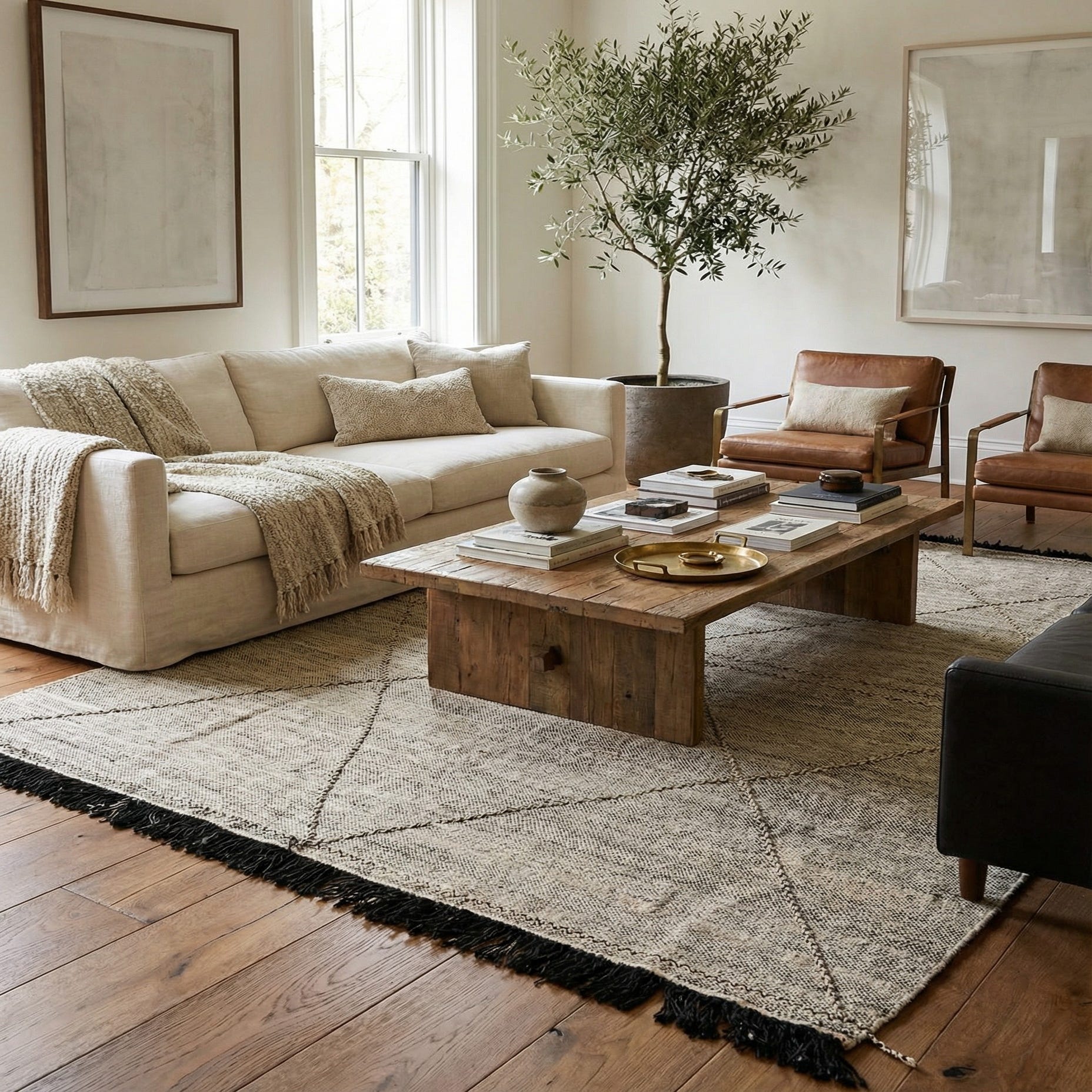 Primary color is Natural. Colors in this rug include: Natural, Brown.