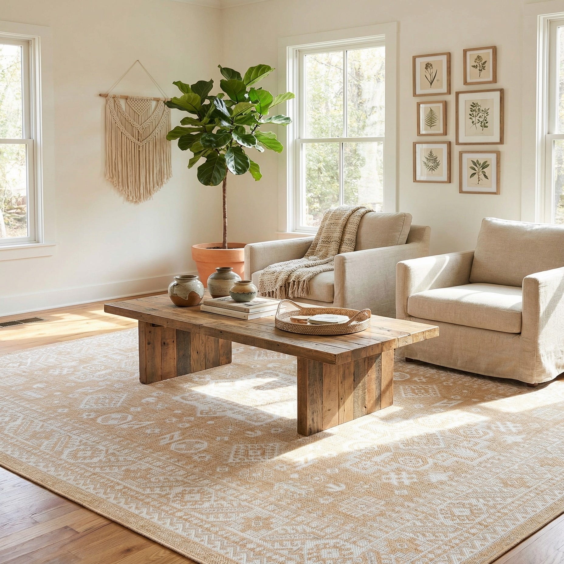 Primary color is Natural. Colors in this rug include: Natural, Ivory.