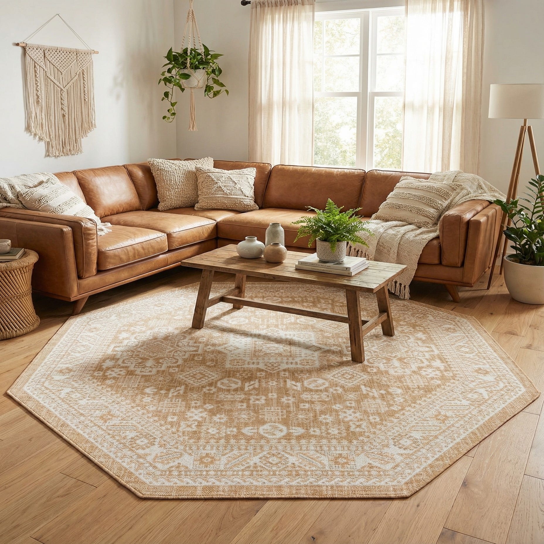 Primary image 7' 10 x 7' 10  Washable Aztec Indoor / Outdoor Octagon Rug