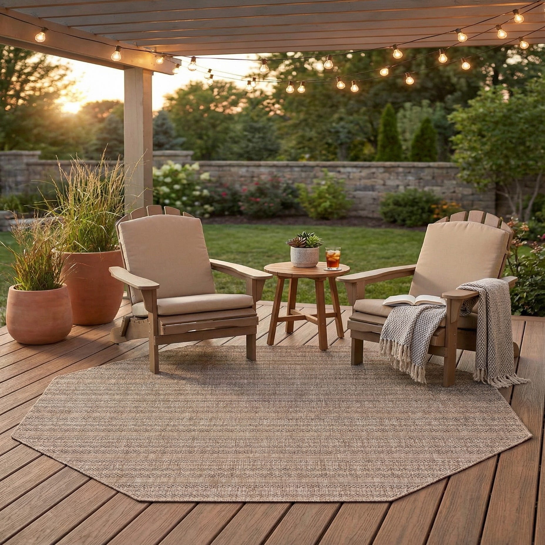 7' 10 x 7' 10 Washable Striped Indoor / Outdoor Octagon Rug