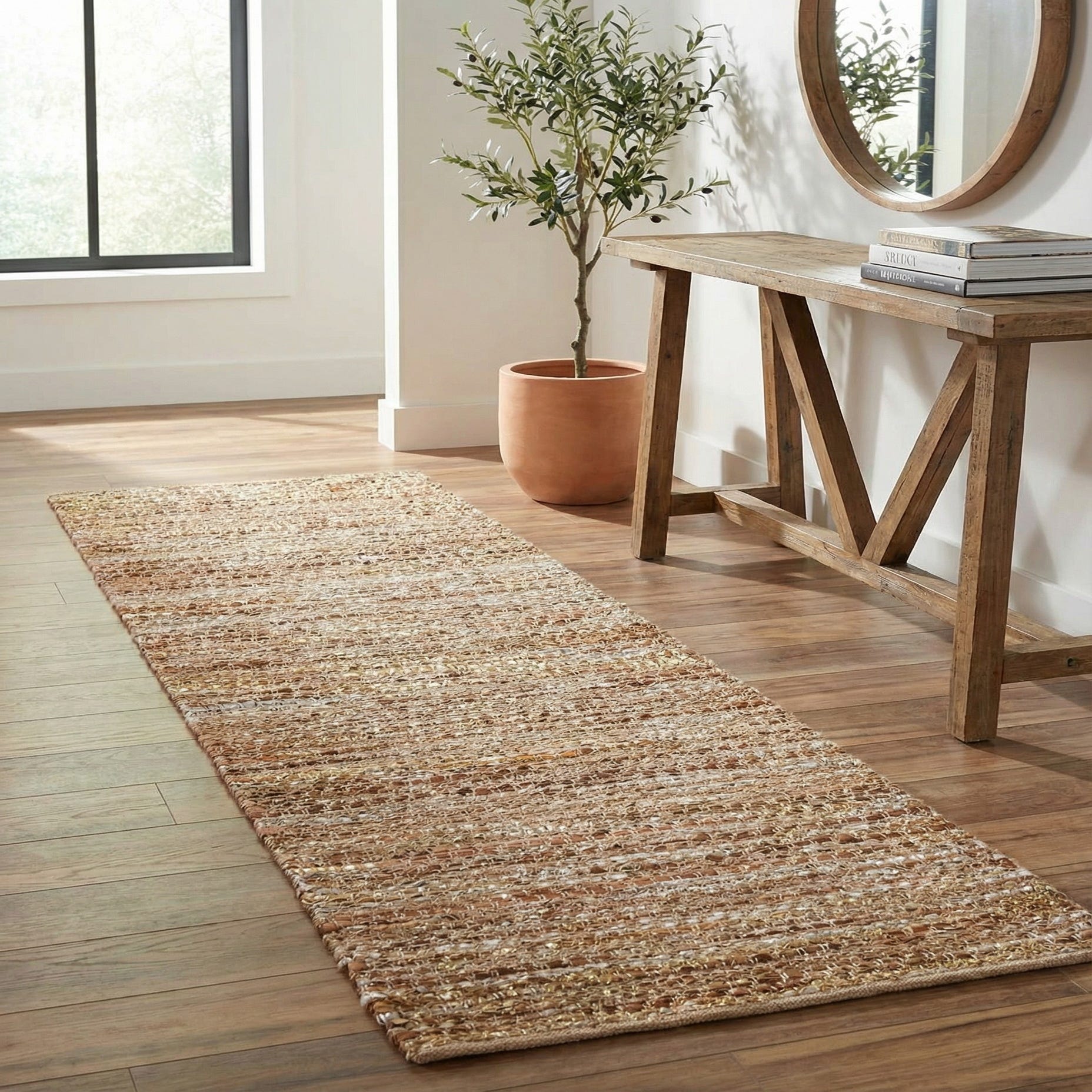2' x 8' Hand Woven Leather Metallic Jute Runner Rug