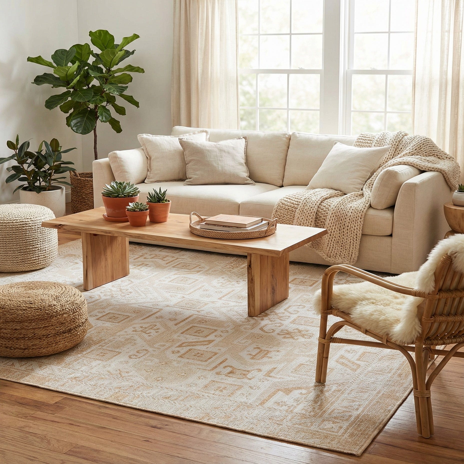 Primary color is Natural. Colors in this rug include: Natural, Beige.