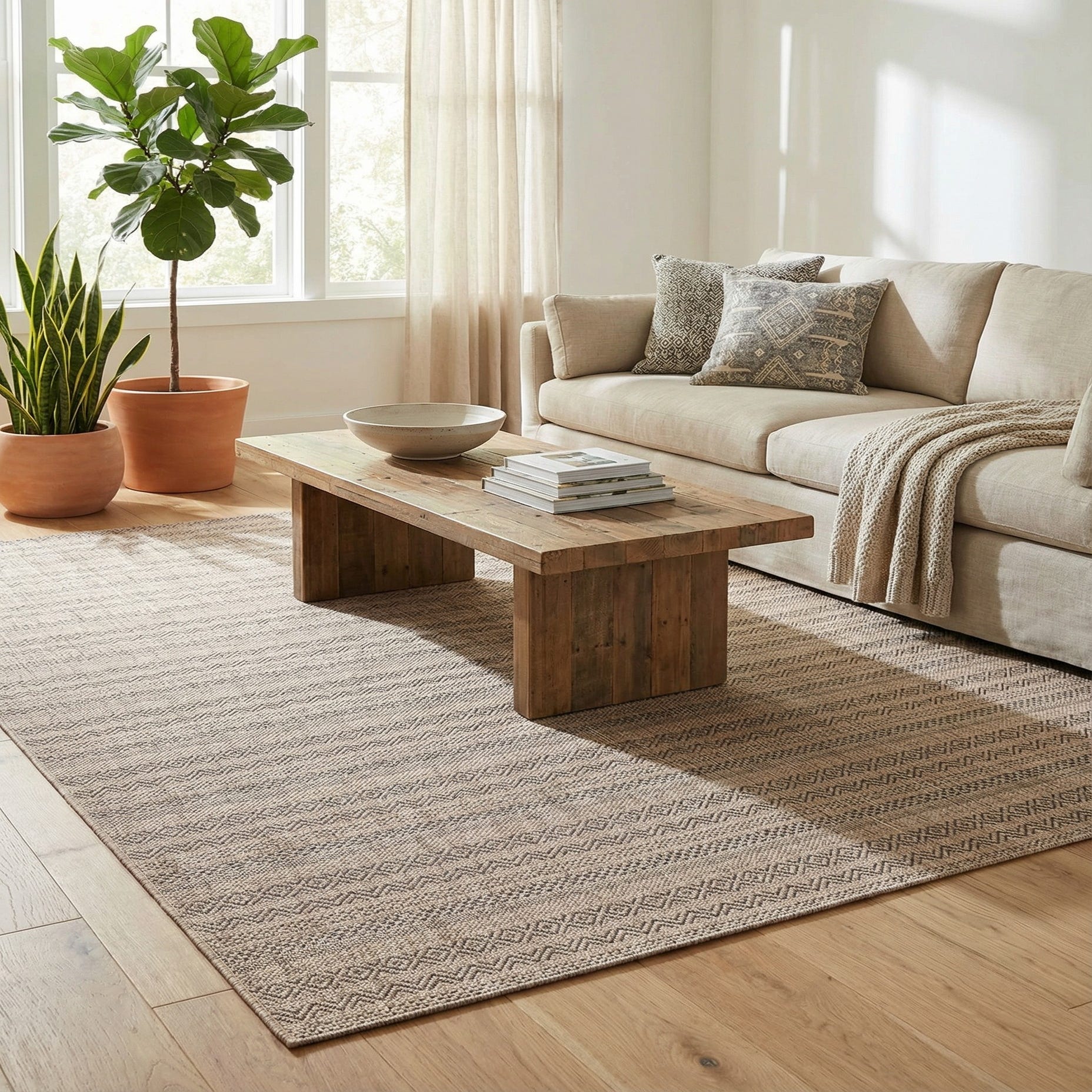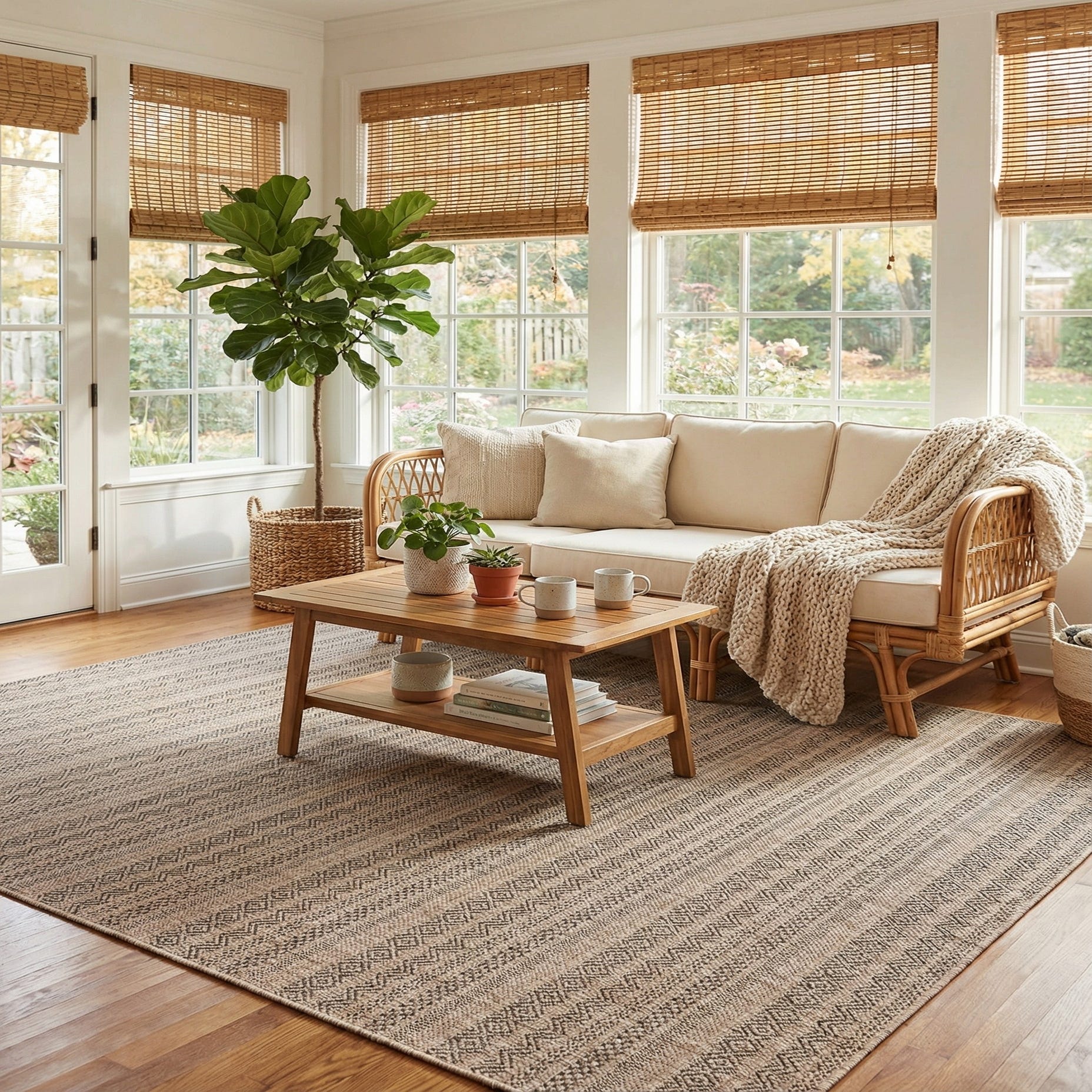 Primary color is Natural. Colors in this rug include: Natural, Black, Ivory.
